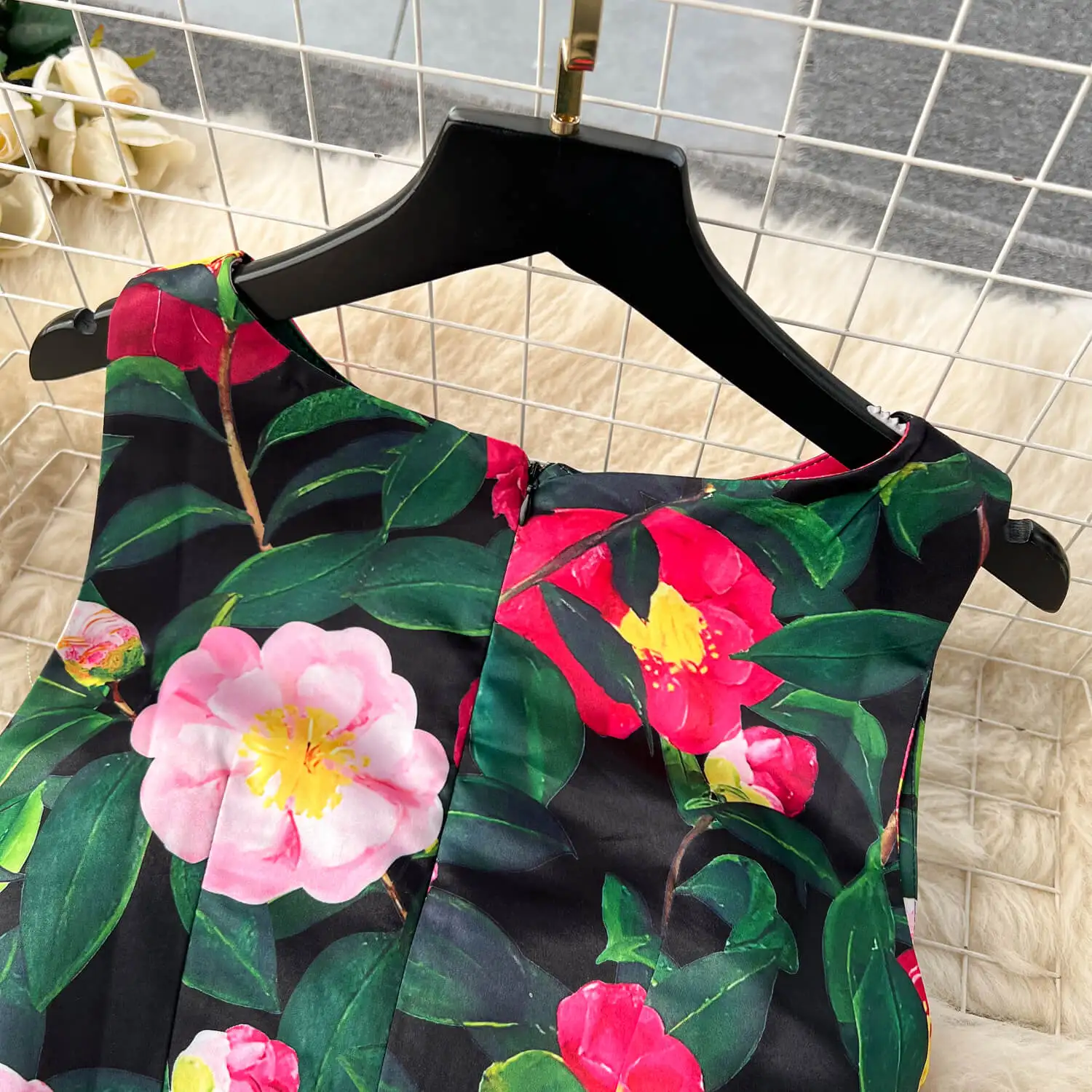 Robe d'été décontractée sans manches à col rond pour femmes, imprimée, taille haute, maxi, trapèze, style rétro, vente en gros, 2024