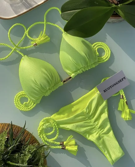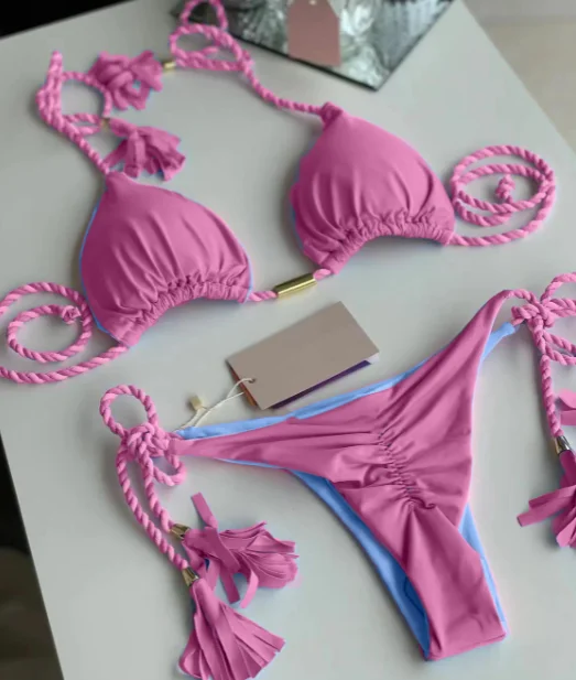 Maillot de bain deux pièces pour femme, ensemble bikini string, sexy, triangle, bandage, vêtements de plage, 2024