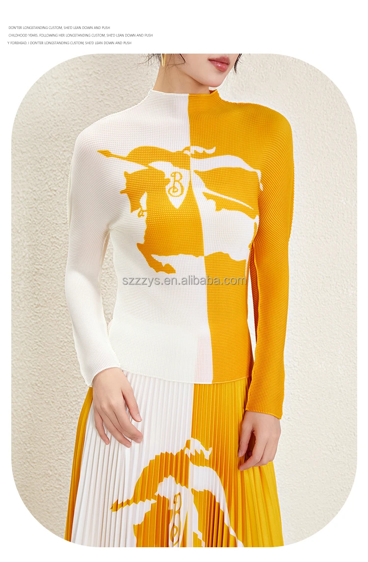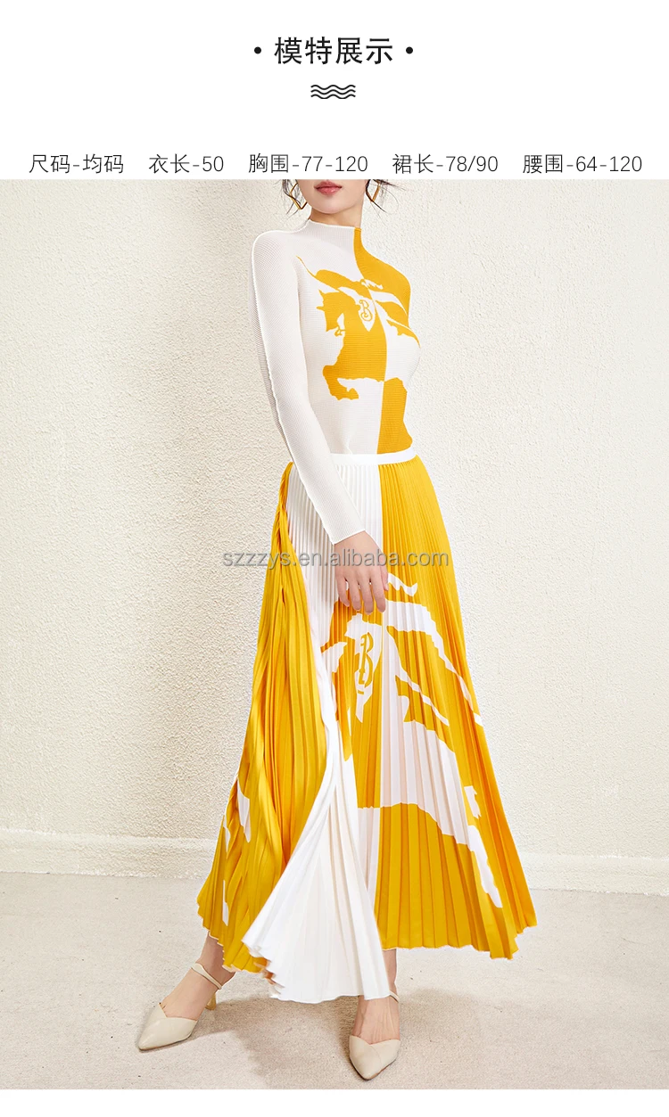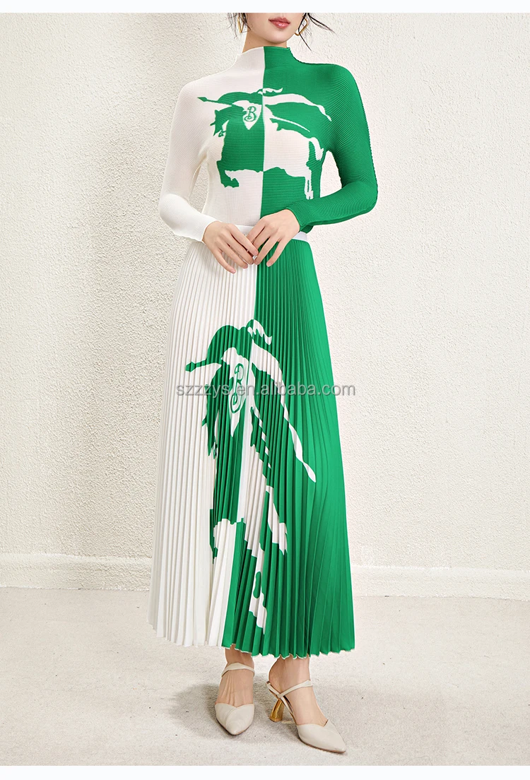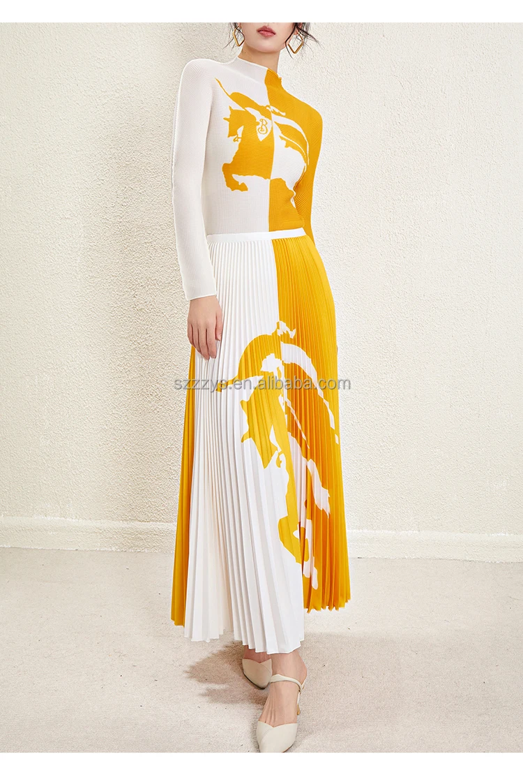 Ensemble de jupe plissée en gros 2024 accepte un haut à manches longues imprimé personnalisé Ensemble de deux pièces de jupe longue plissée imprimée