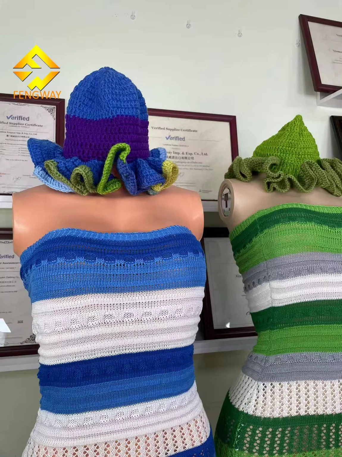 Ensemble de vêtements pour femmes 2024 Y2k robes décontractées tube haut robe mignonne dentelle tricotée robes d'été sans manches rayées
