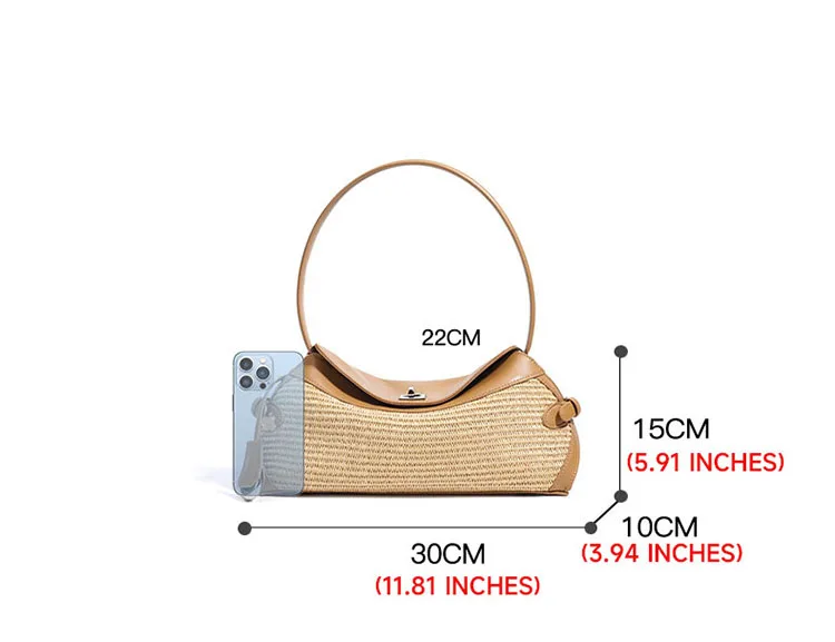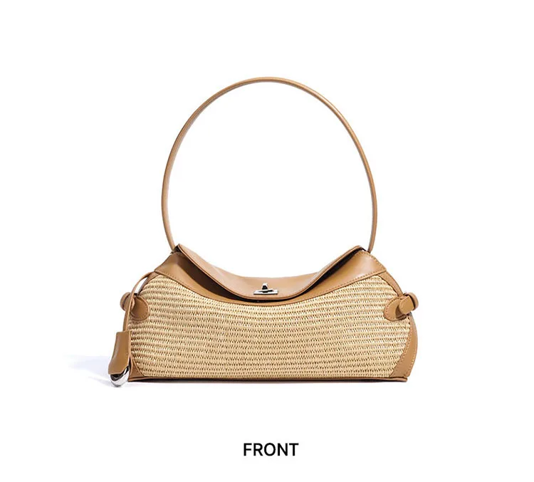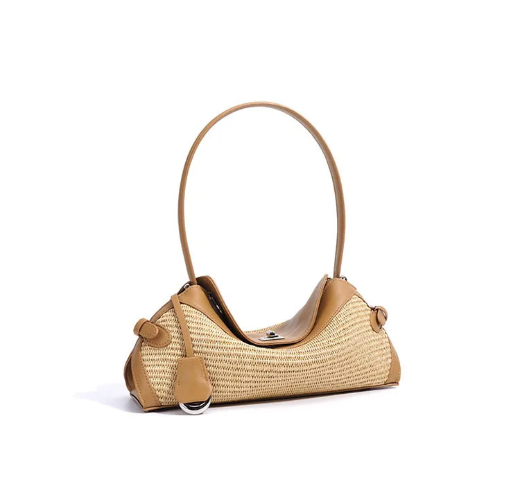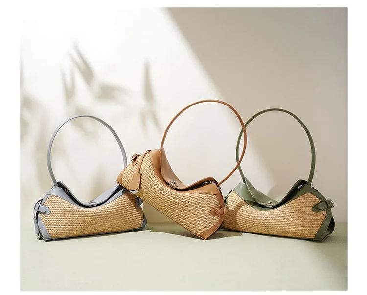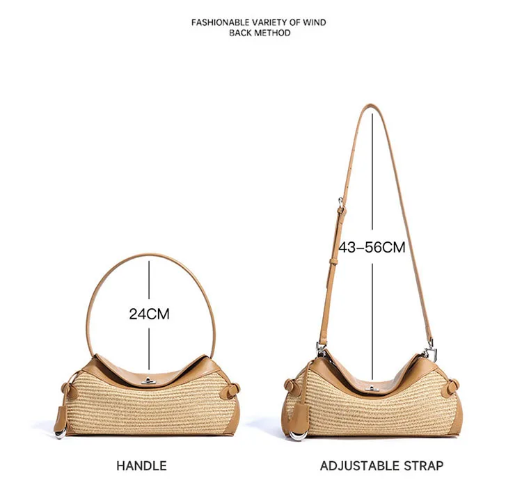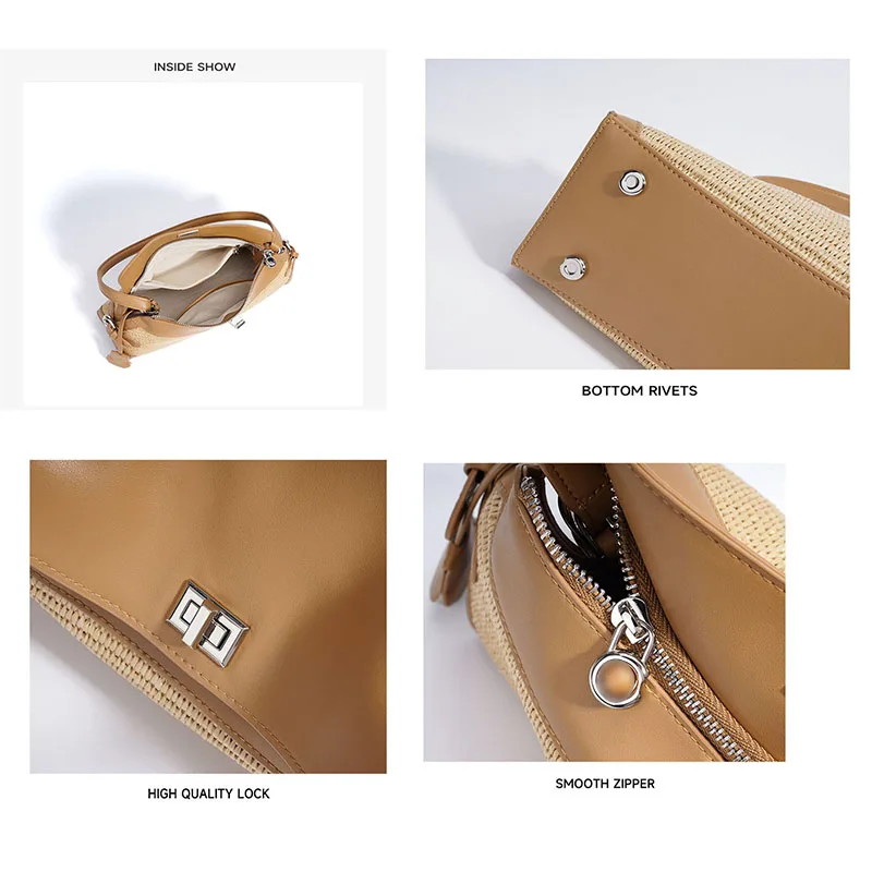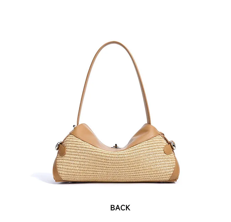 2025 Lightweight Simple Fashion Sling Raffia Crossbody Tote Bag High Quality Genuine Leather Handmade Woven Straw Underarm
