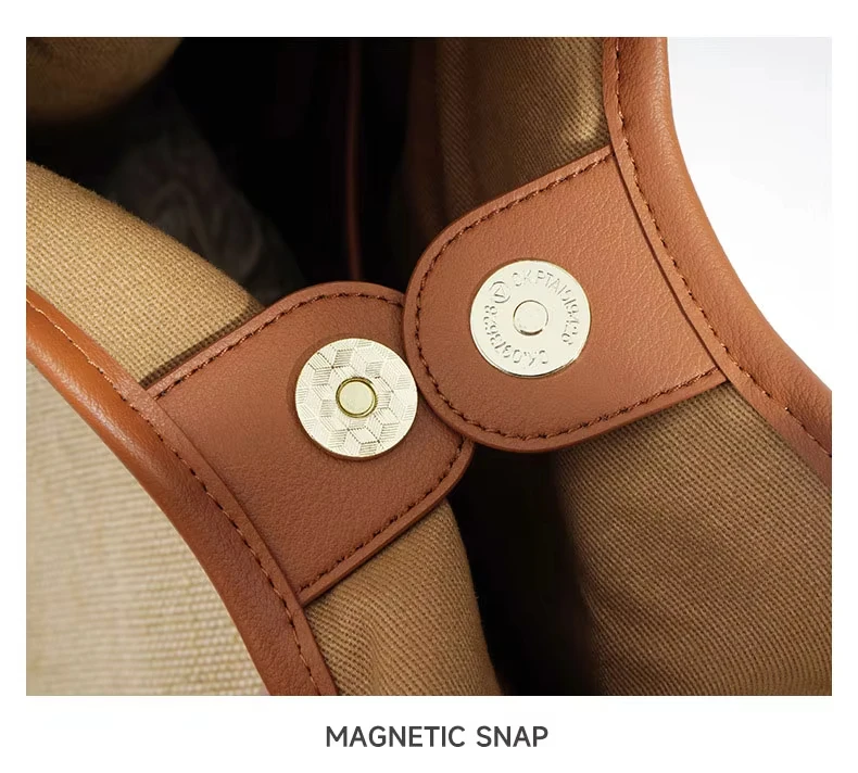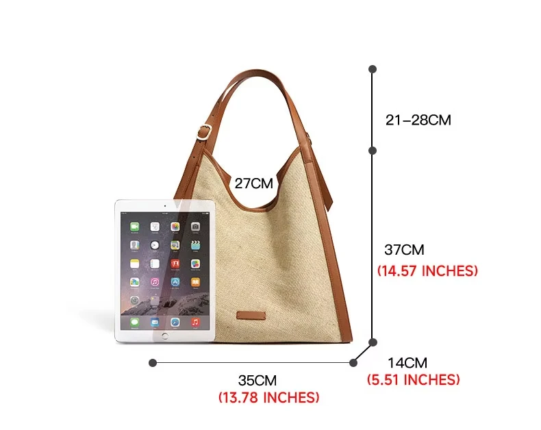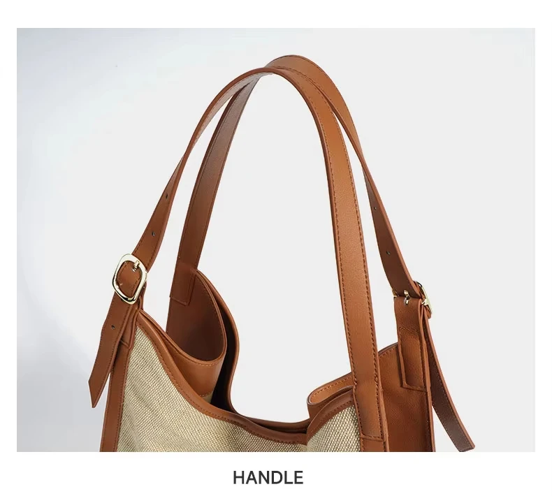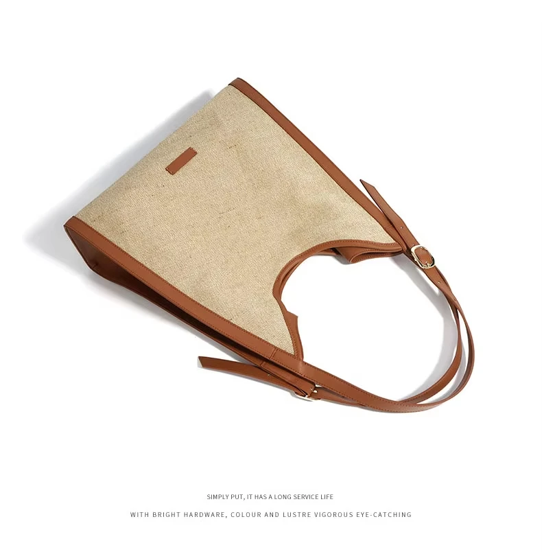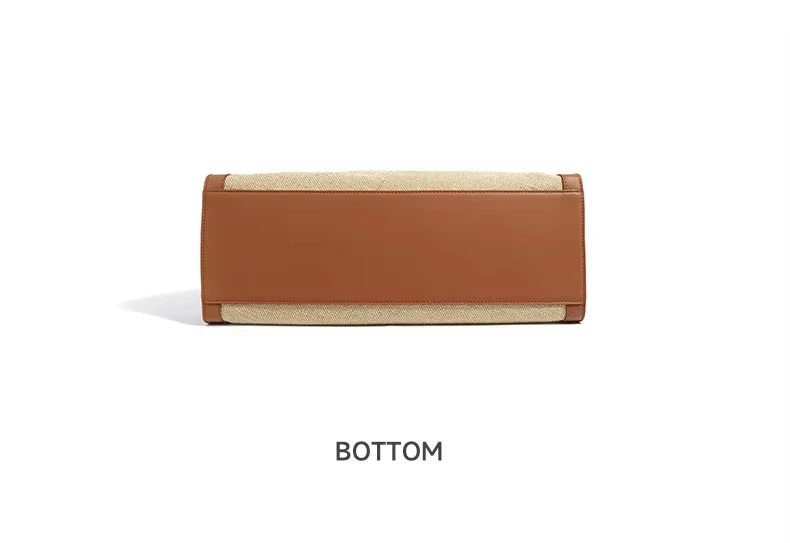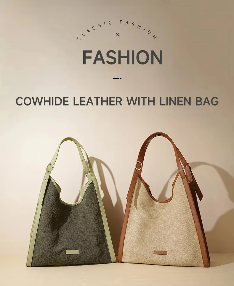 New Luxury Large Capacity Genuine Leather Cotton Linen Tote Bag |