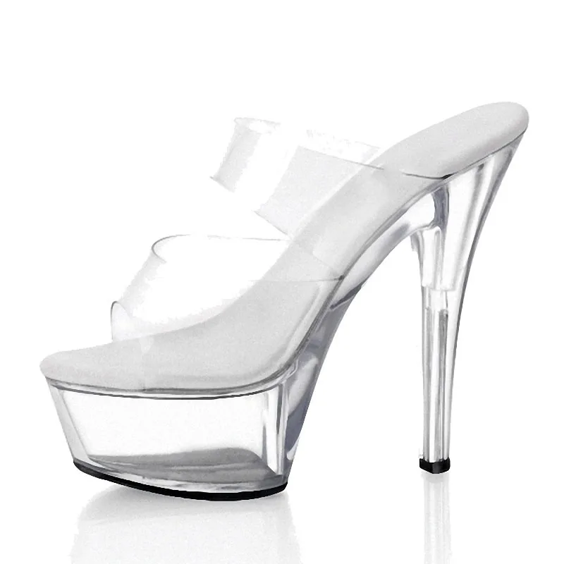 Sandales d'été à talons aiguilles transparents en cristal de 6 pouces, plateforme de 15 cm, pour club, strip-teaseuse sexy, travestie