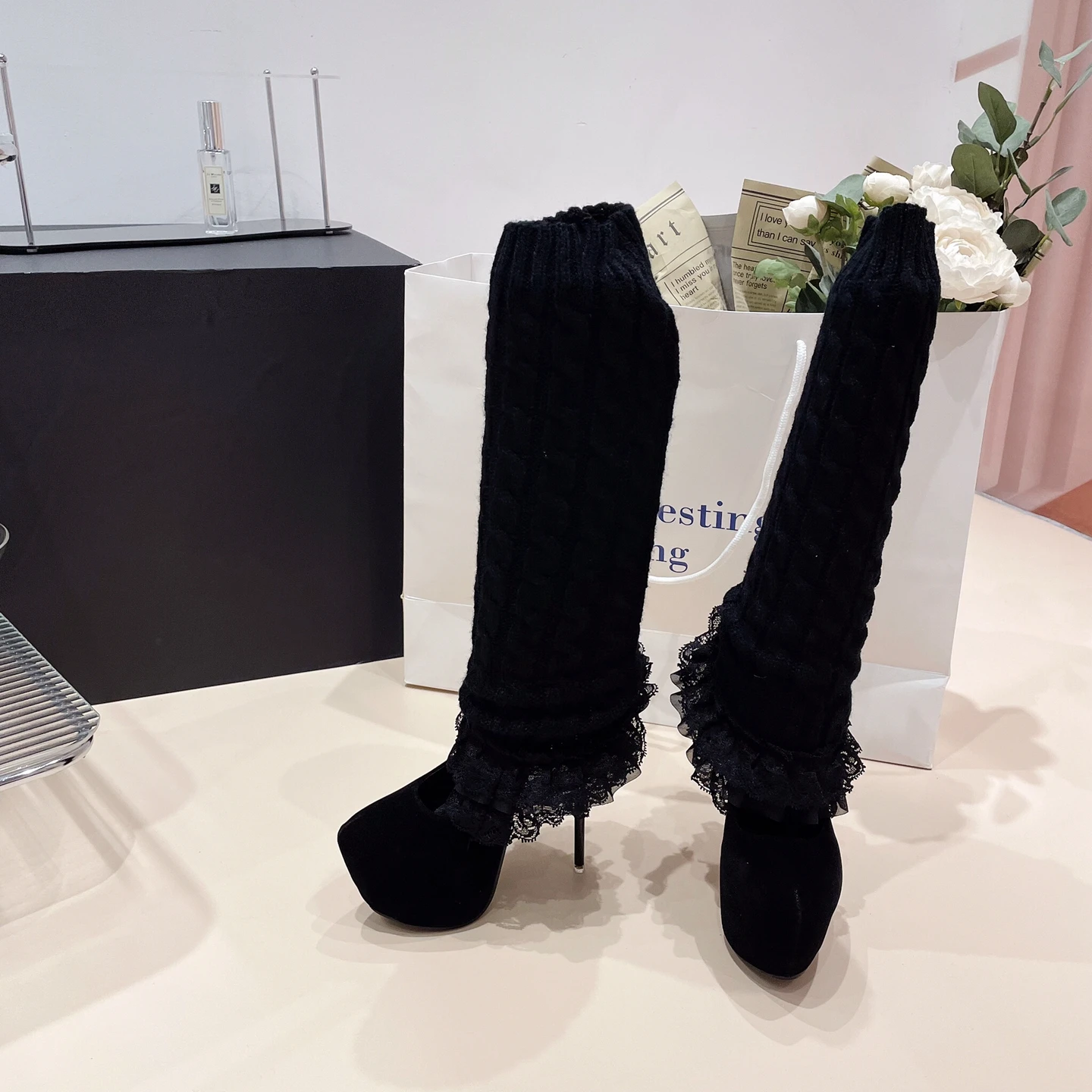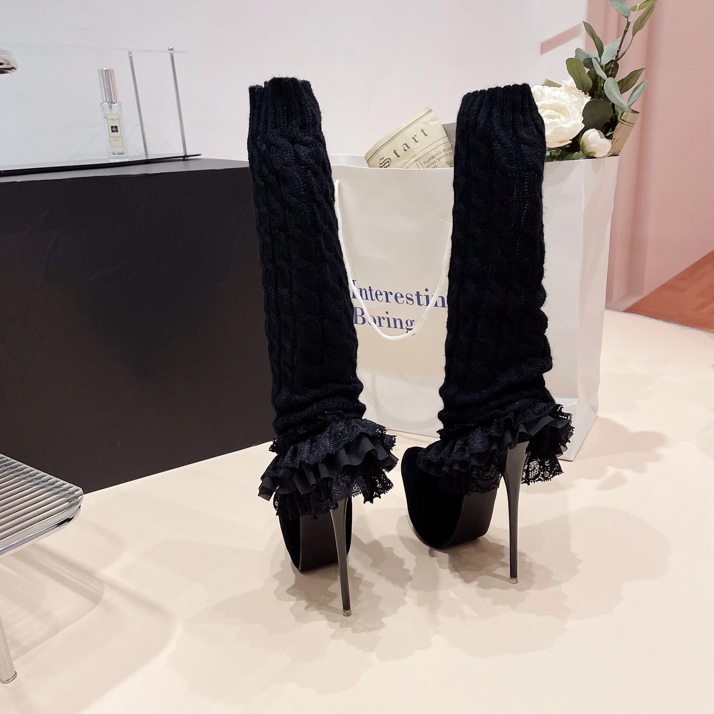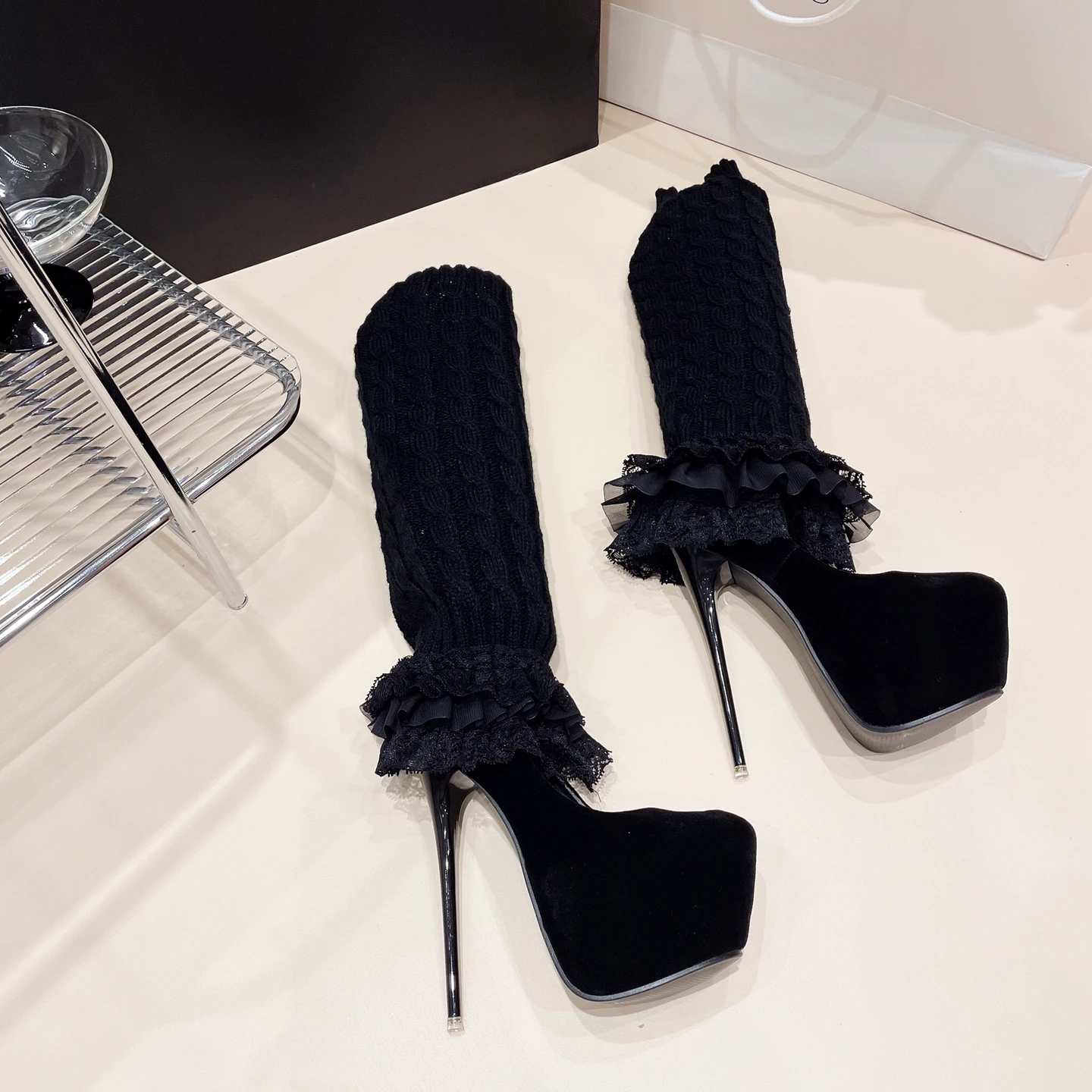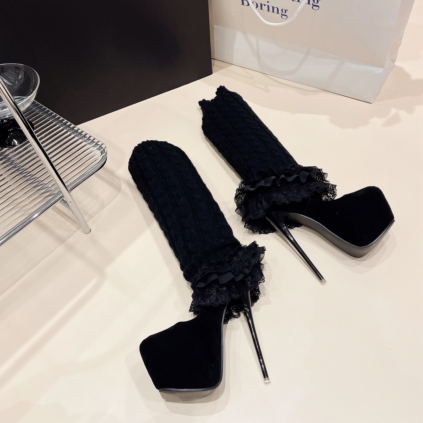 Bottes à talons hauts Aneikeh Flock pour femme, bottes modernes à plateforme et à talons super hauts, idéales pour les fêtes et les mariages, collection 2024