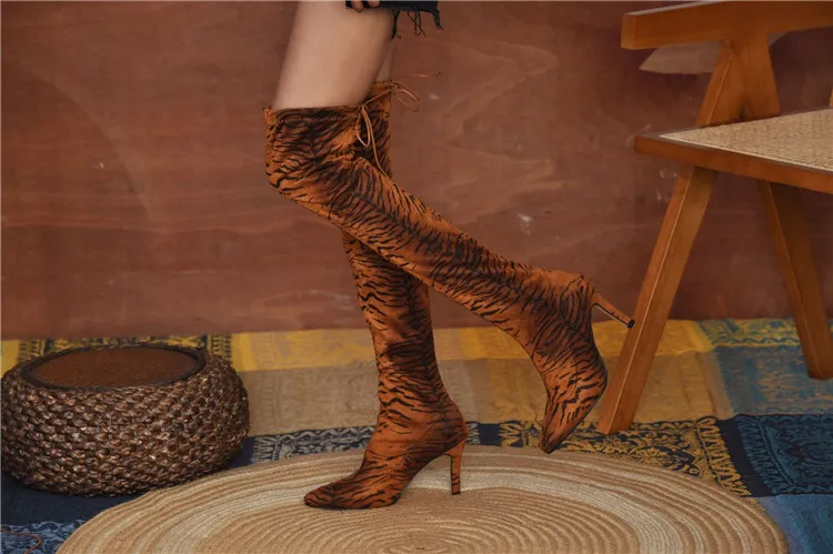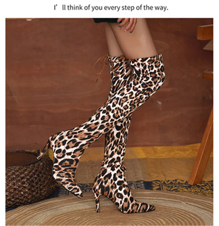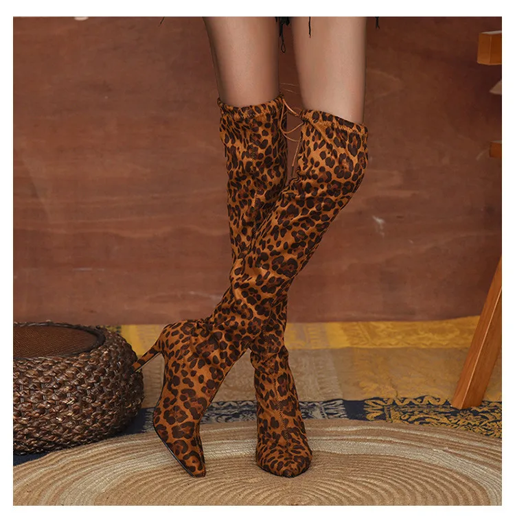 Chaussures d'automne tendance pour femmes, bottes longues sexy à talons hauts et imprimé léopard