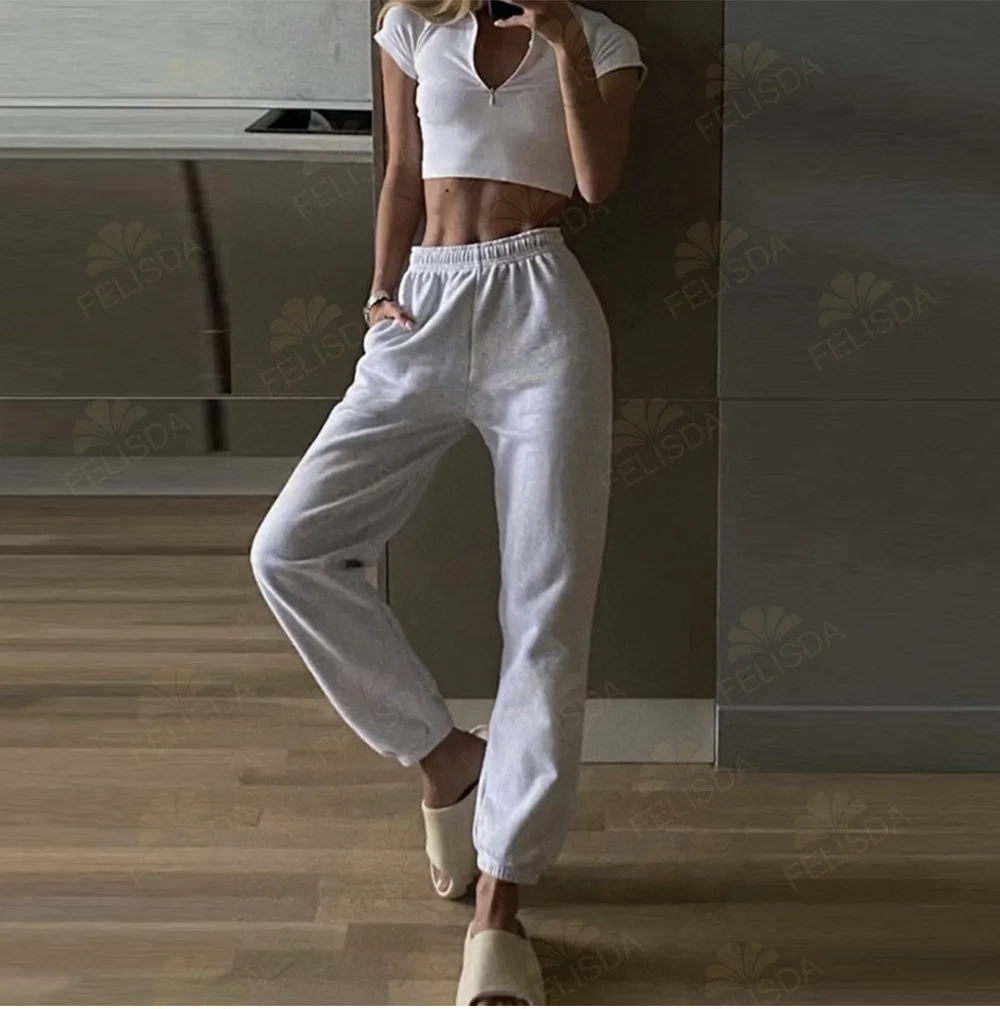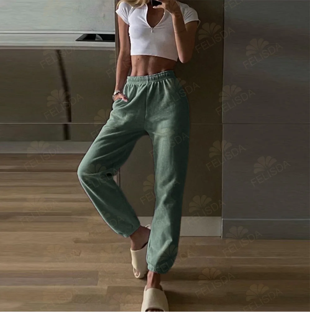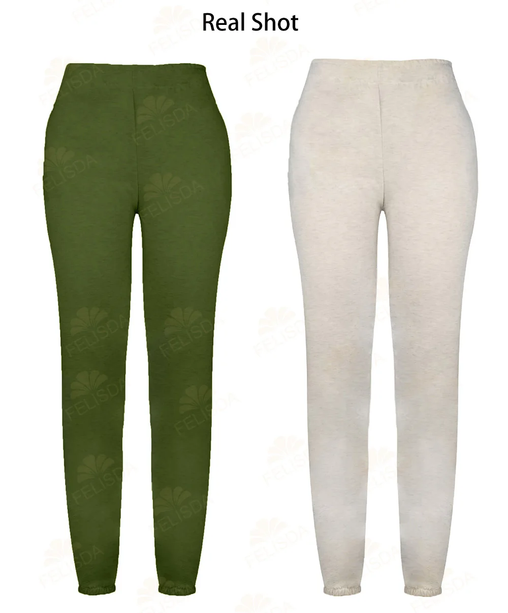 Pantalon de survêtement en coton pour femme, décontracté, ample, taille haute, uni, doux, jogging, sarouel, automne-hiver