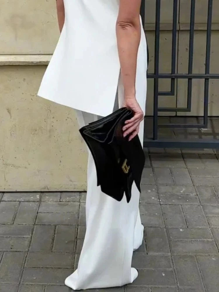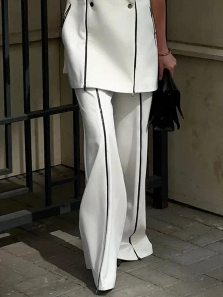 Beautyblue Striped Sports Pants Women Zipper Trousers Summer New White Patchwork High Waist Wide-leg Bottom Office Commute Pant