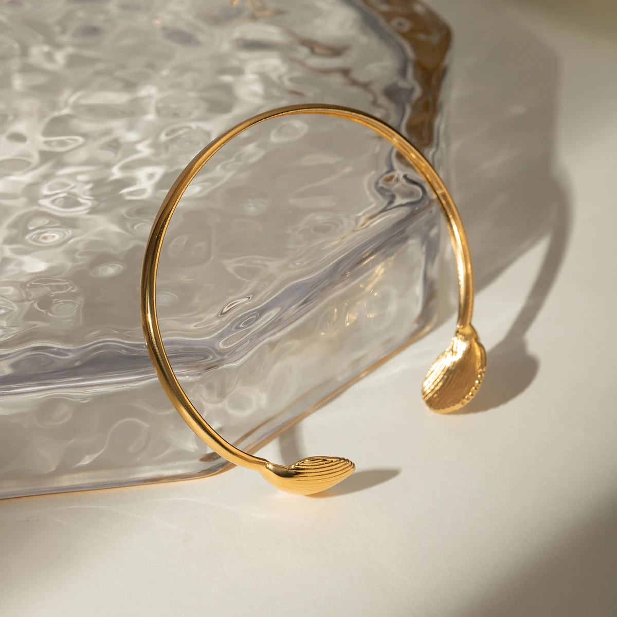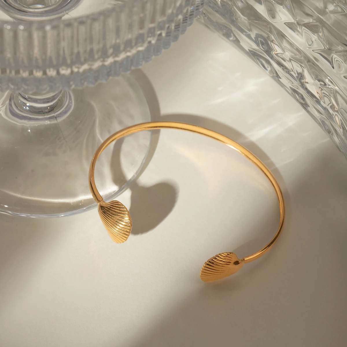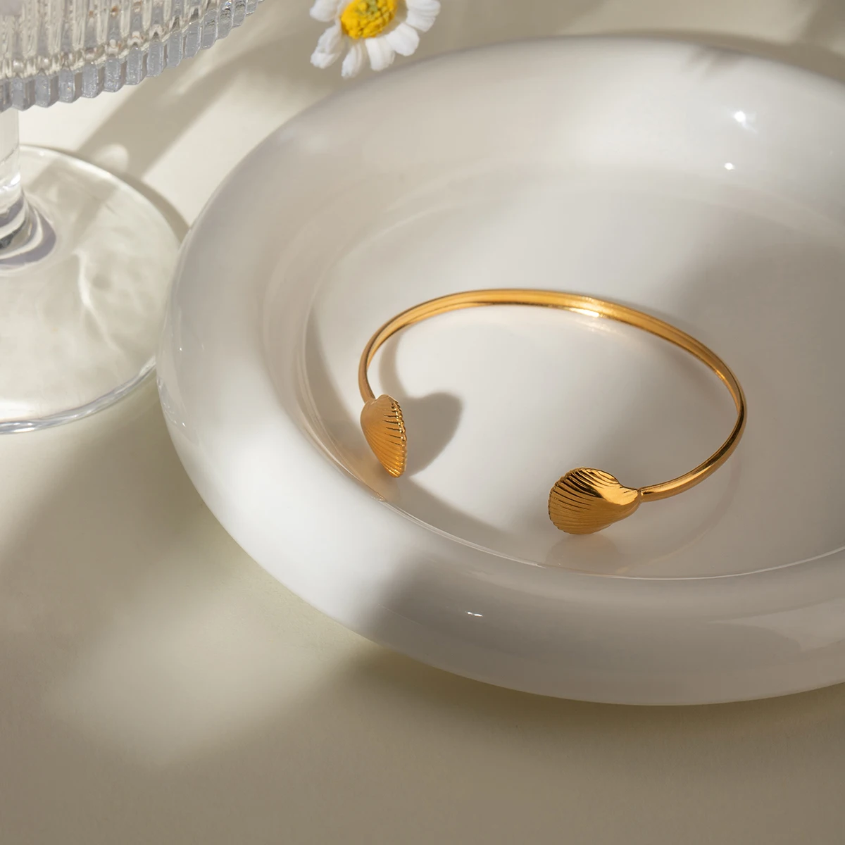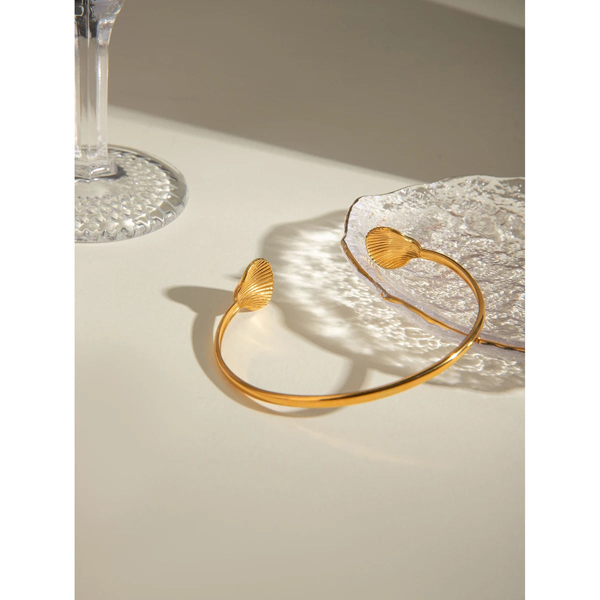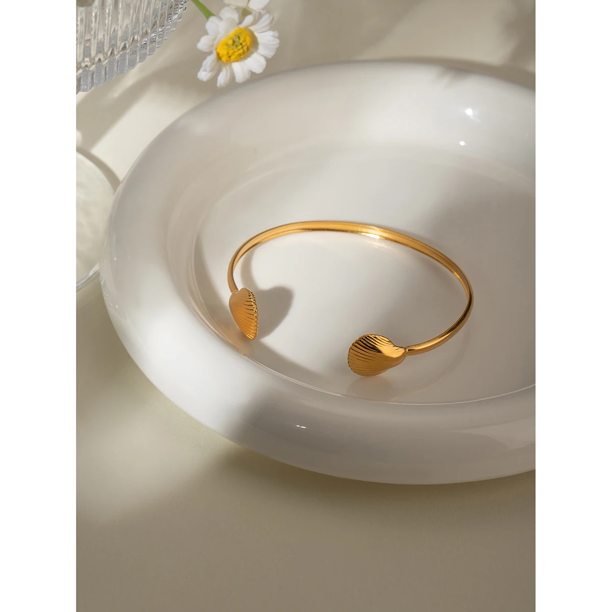 Bracelet manchette ouvert minimaliste en plaqué or 18 carats PVD BG876, motif coquillage festonné, pour femme