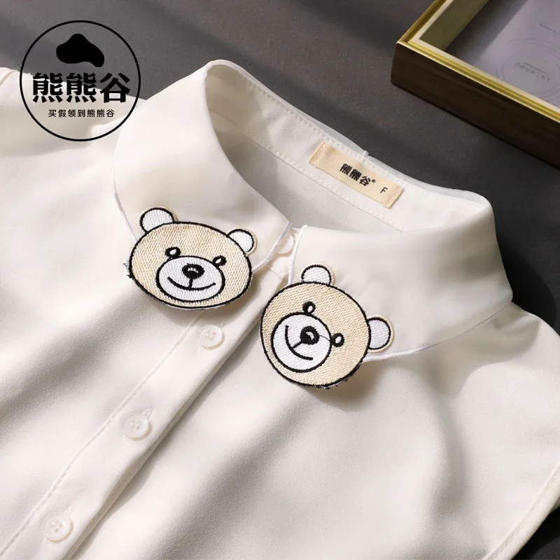 White Fake Collar Women Detachable Collars Cute Bear Chiffon False Collars Woman Decoration Tie Lapel Collar Clothes Accessorie