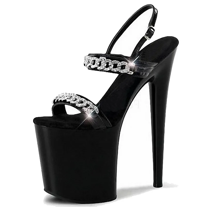 Sandales à talons hauts noirs pour femmes, chaussures à plateforme de 20 cm, pour club, strip-tease, été, bout ouvert, grandes tailles