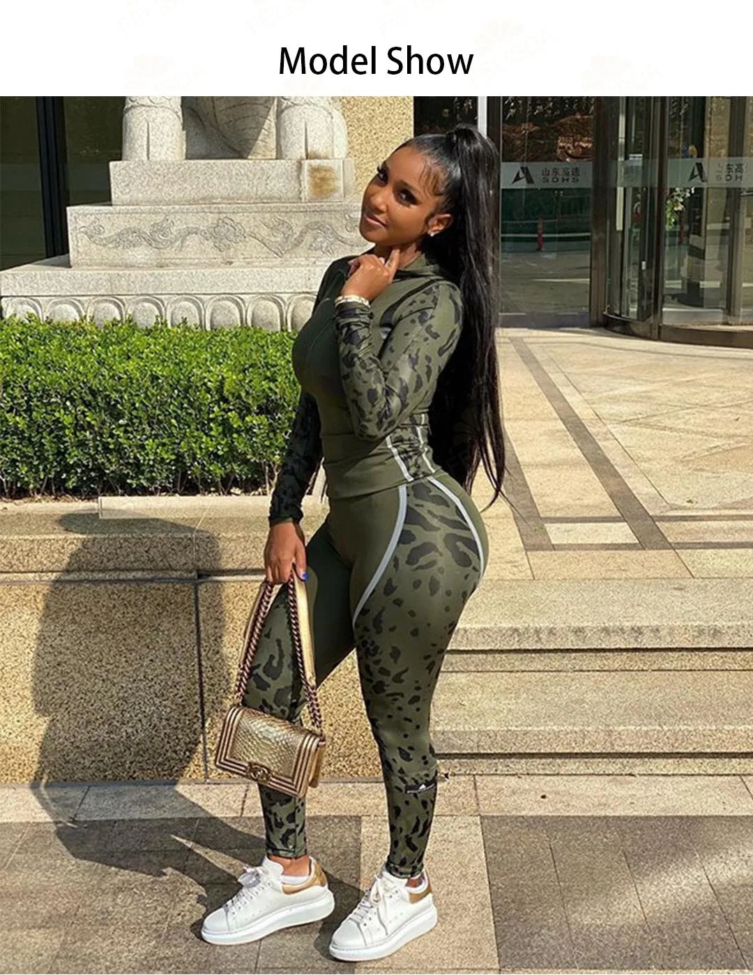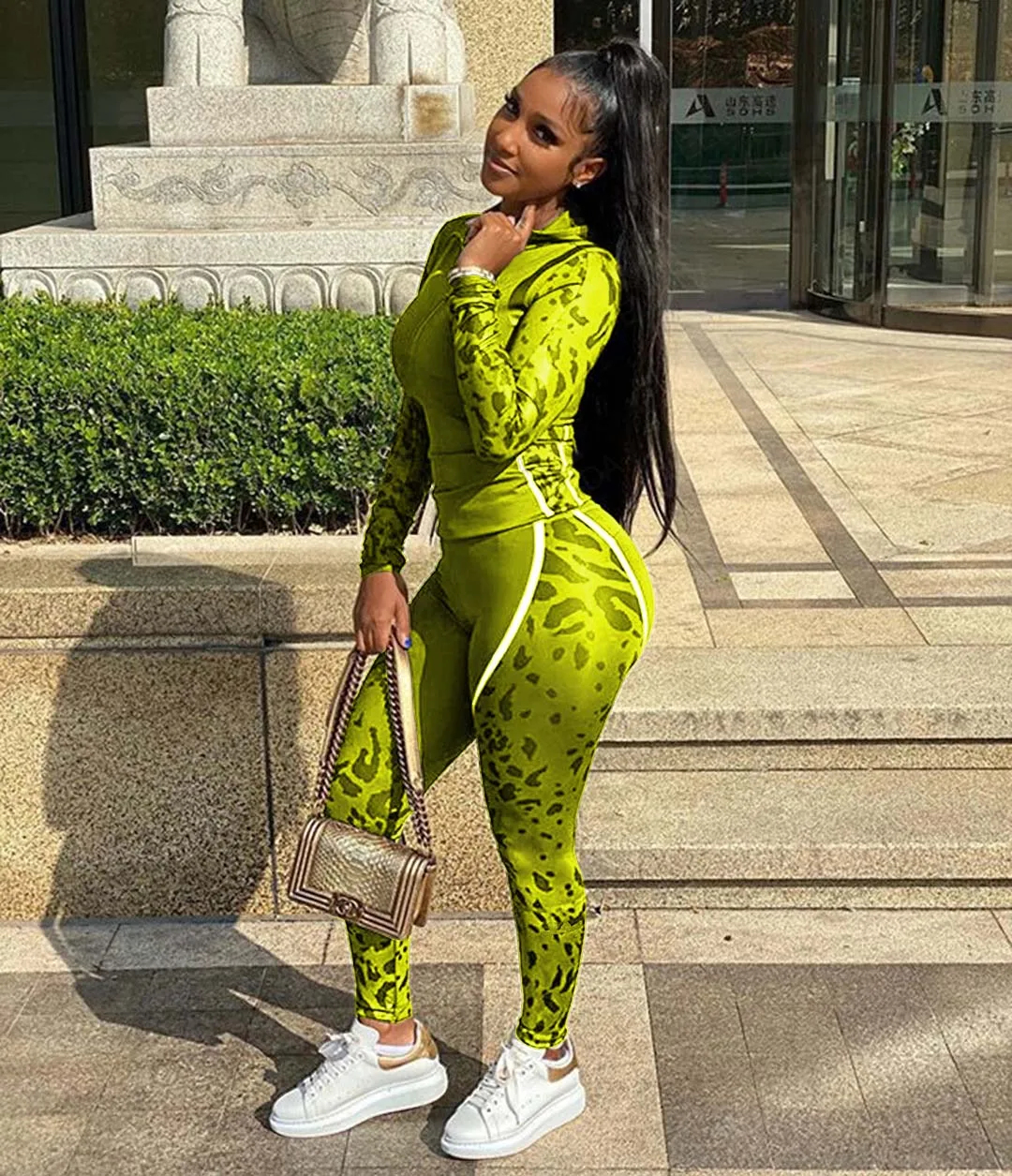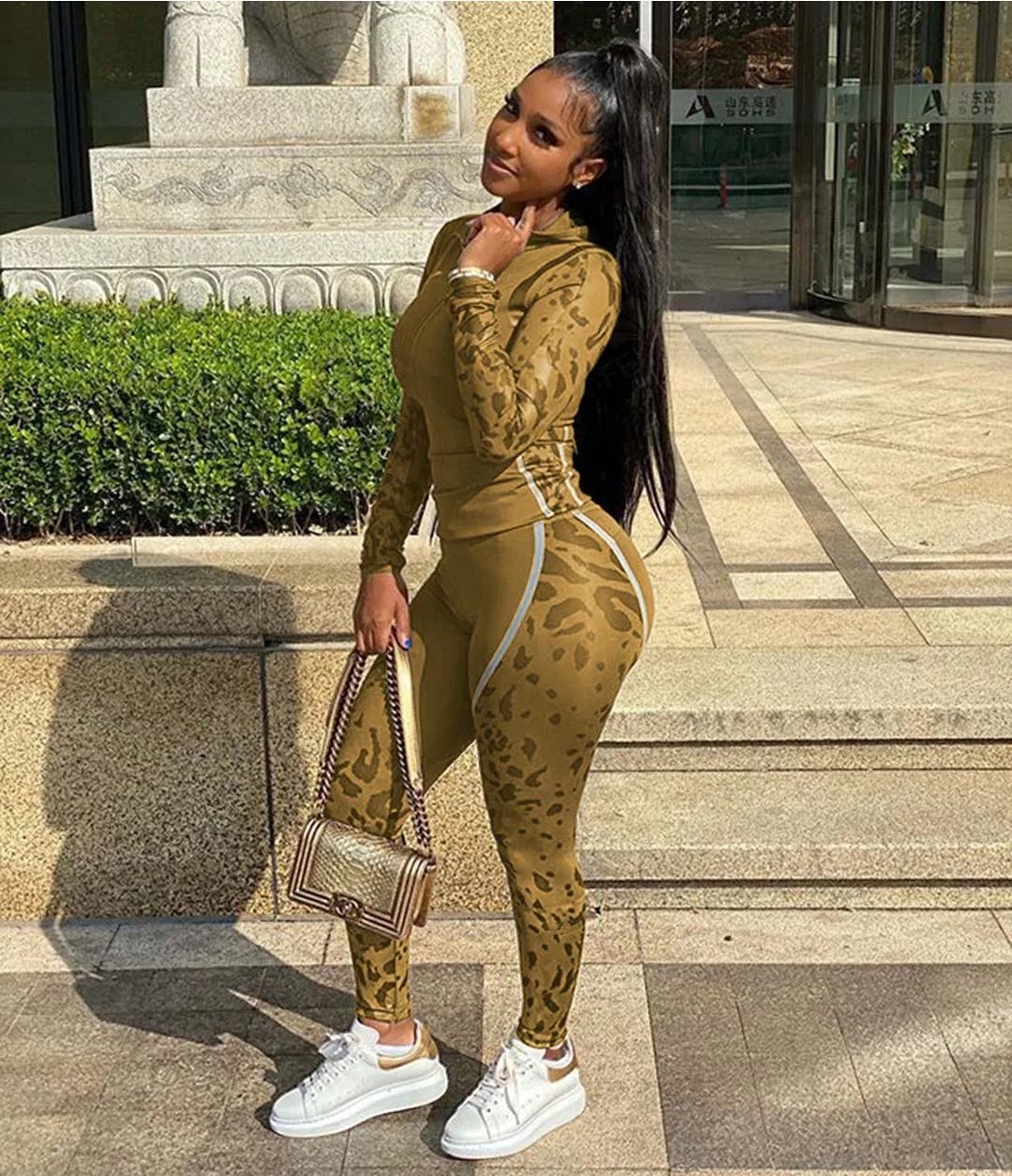 Ensemble deux pièces imprimé tendance pour femme, tenues élastiques, sweats à capuche, survêtements assortis, ensembles de jogging, vêtements de détente