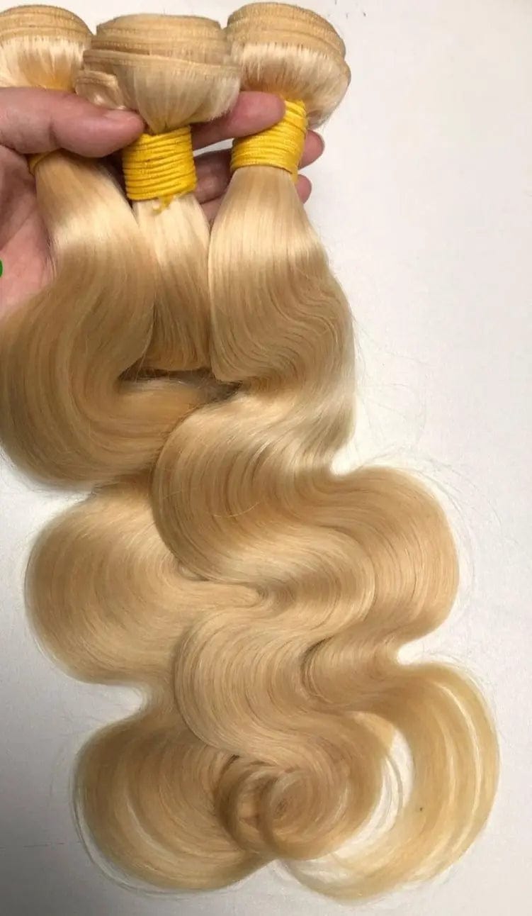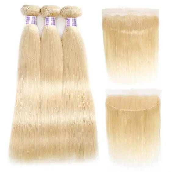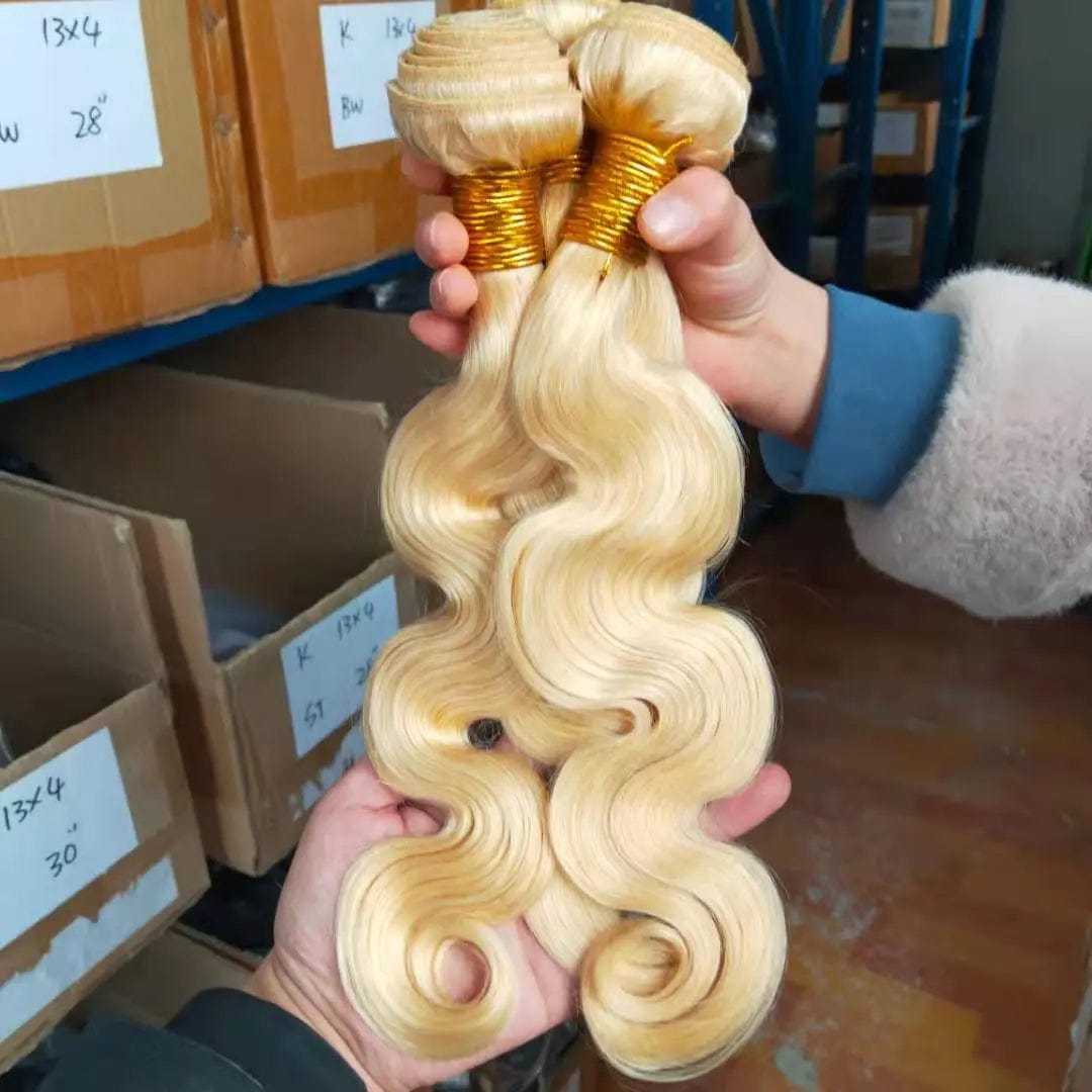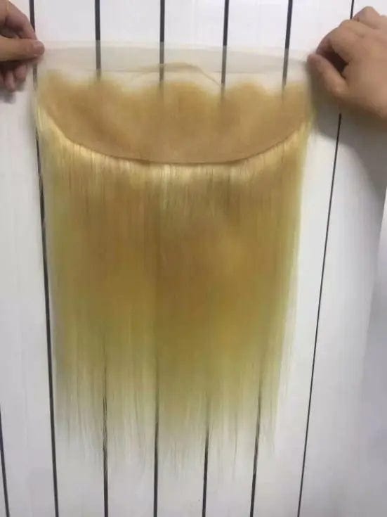 Mèches de cheveux brésiliens naturels 10A 613, lot de 3 (35 à 61 cm) avec frontal (30 à 55 cm), 24 pièces, livraison gratuite, logo personnalisable.