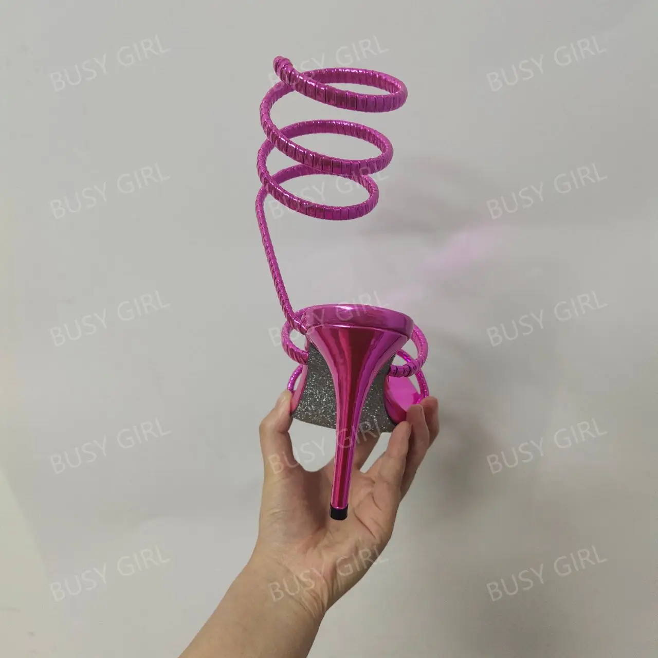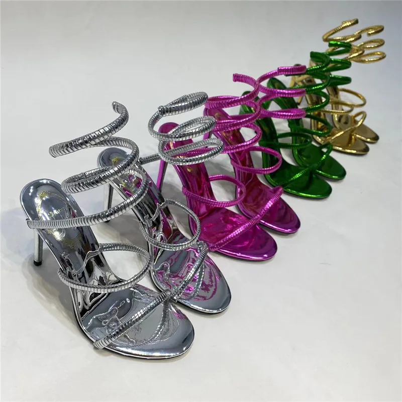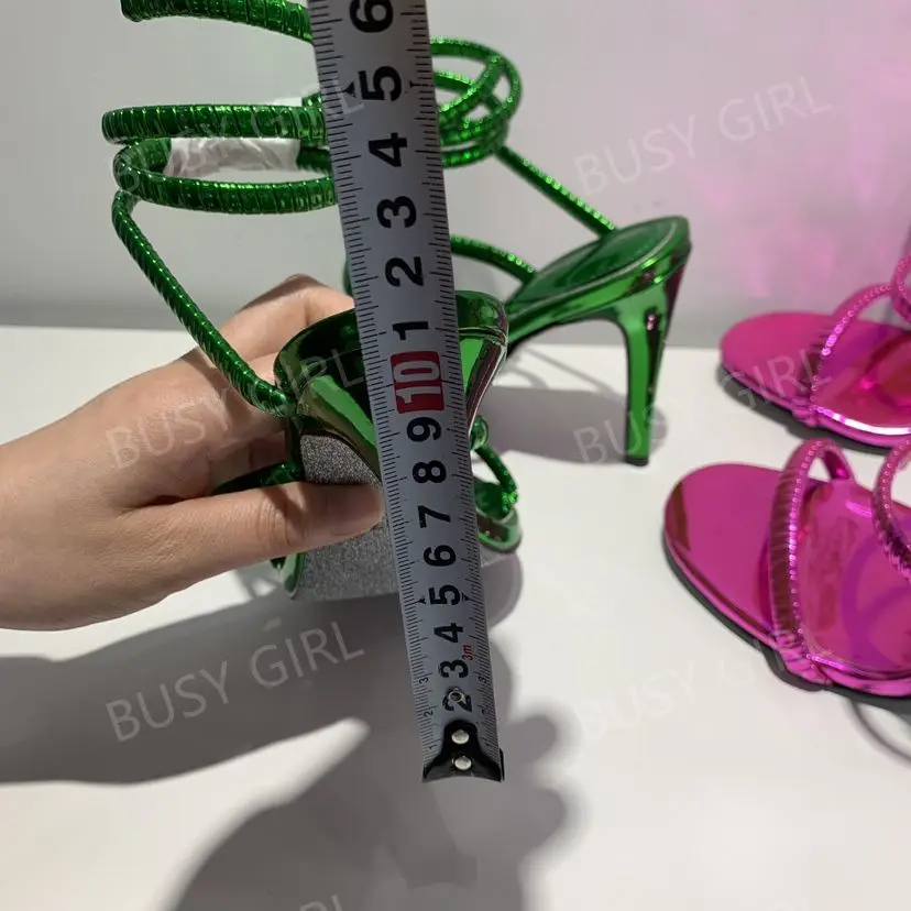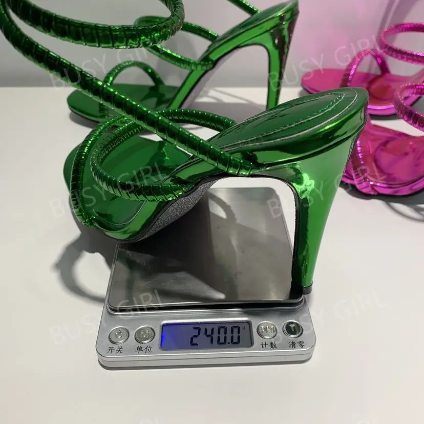 BUSY GIRL OSM4675 Sandales à brides serpent Chaussures à talons pour femmes Chaussures de luxe Semelle brillante Chaussures à talons aiguilles pour femmes Sandales à talons