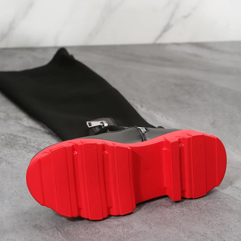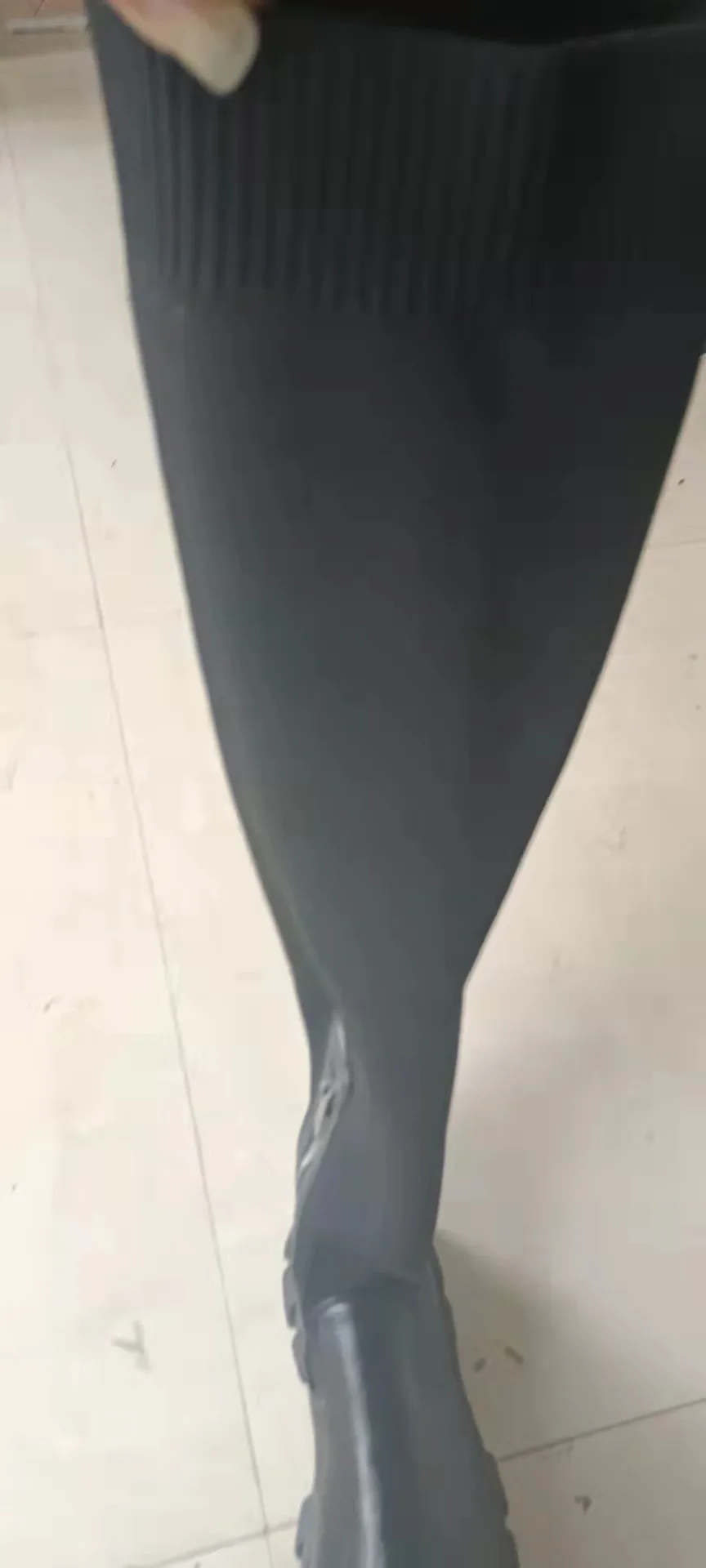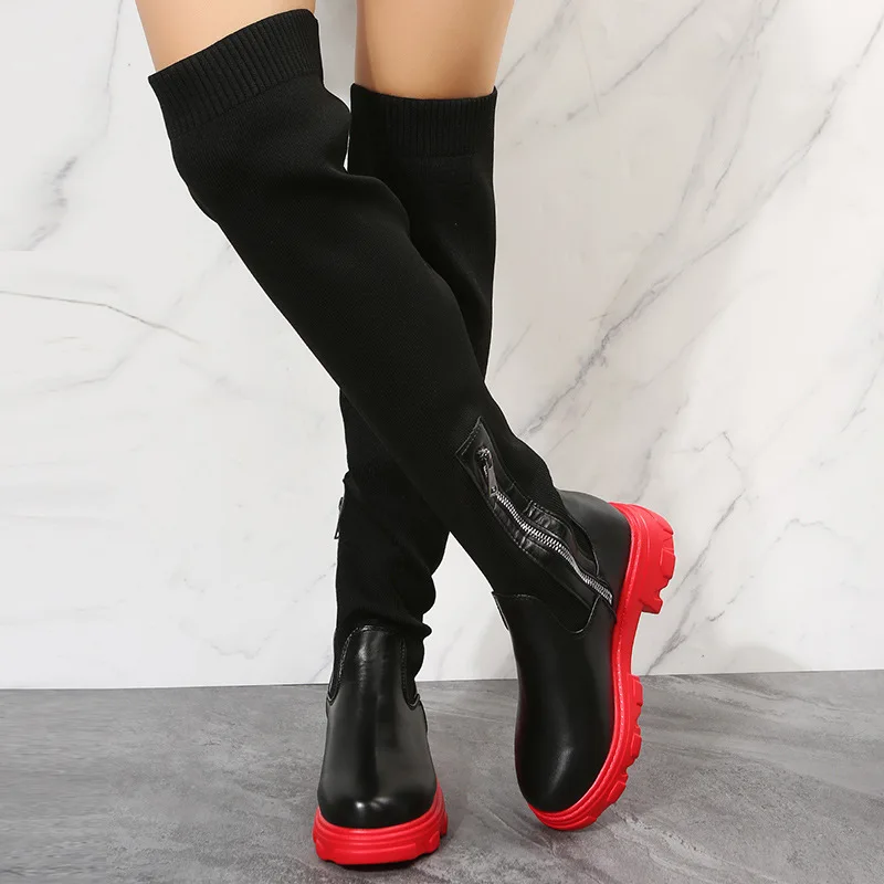Bottes hautes au-dessus du genou pour femmes BUSY GIRL 2023 bottes plates épaisses en tricot extensible noir beige pour femmes dames