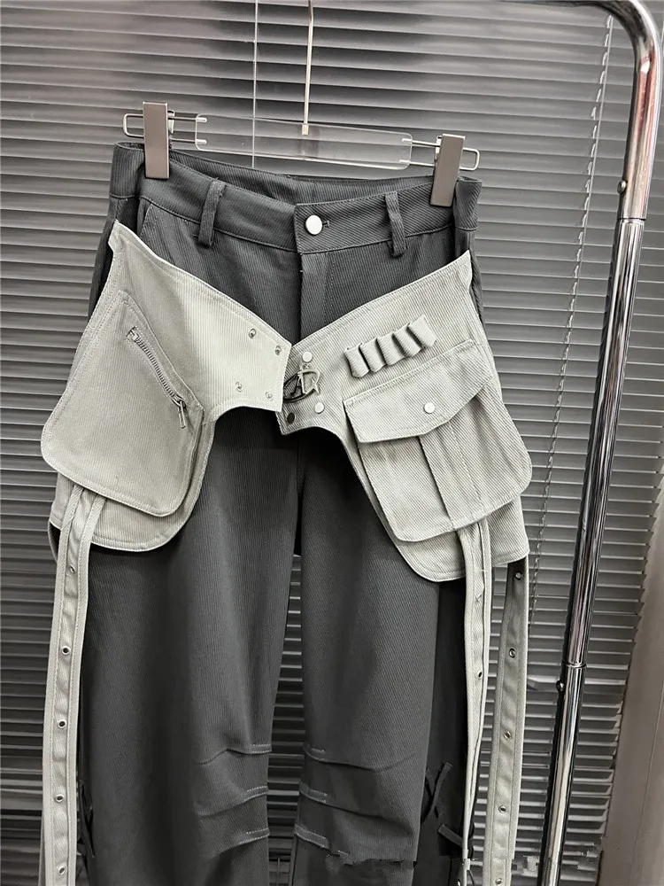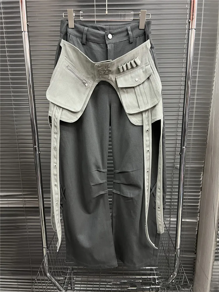 Pantalon ample à jambes larges et décontractées, couleurs contrastées, poches patchwork, cordon de serrage, nouvelle collection printemps 2024