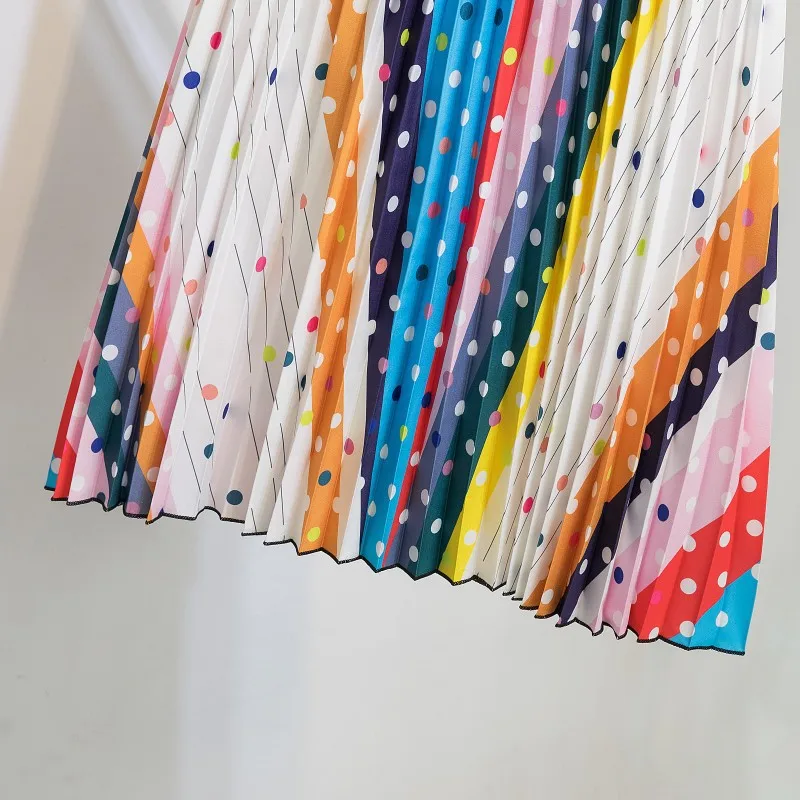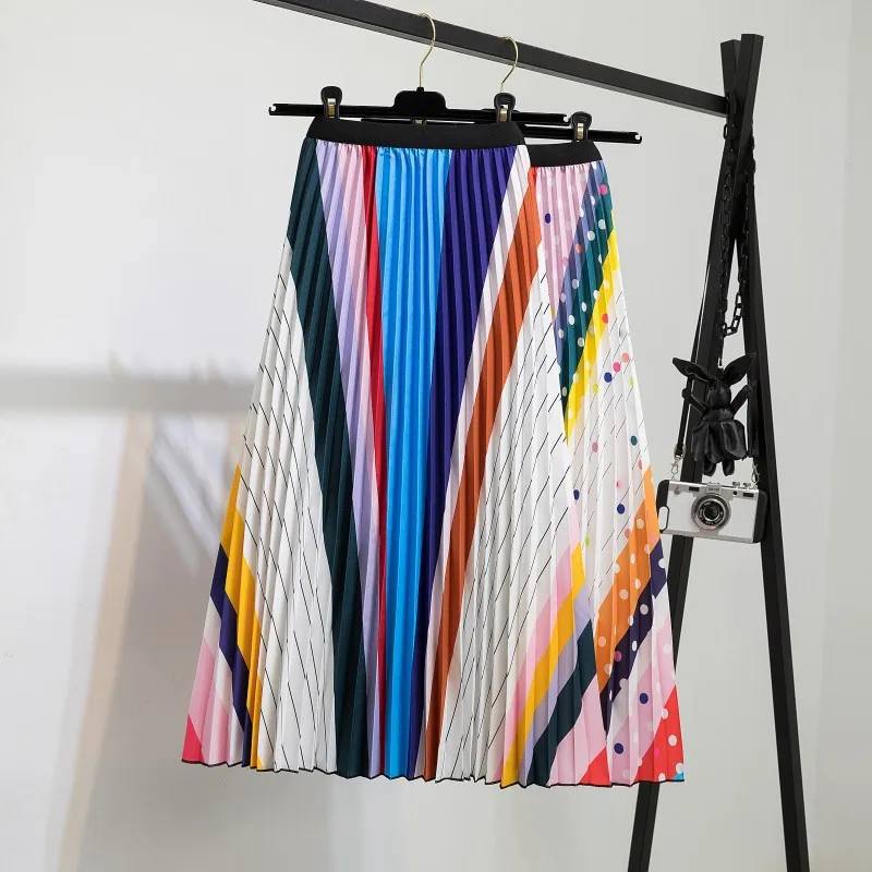 Production Name:Casual Floral Midi Pleated Skirt For Women Fashion Printed Flower A Line Elastic High Waist Mid-length Skirt Female Ladies falda