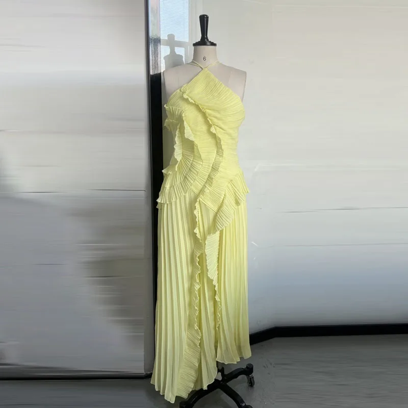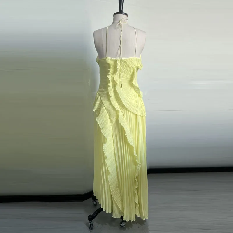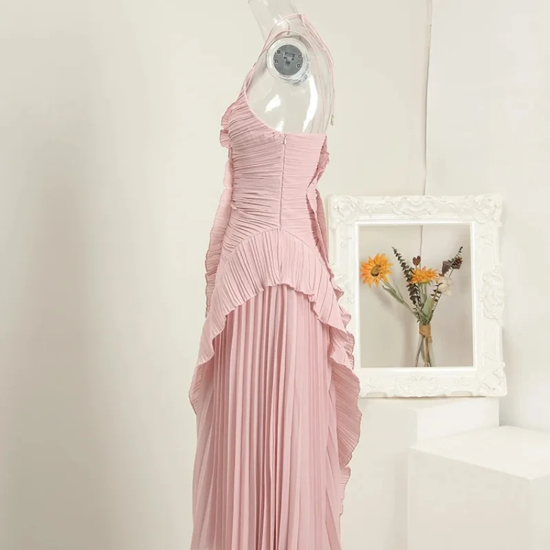 Model Number: Elegant Neck Strap Ruffles Evening Gown