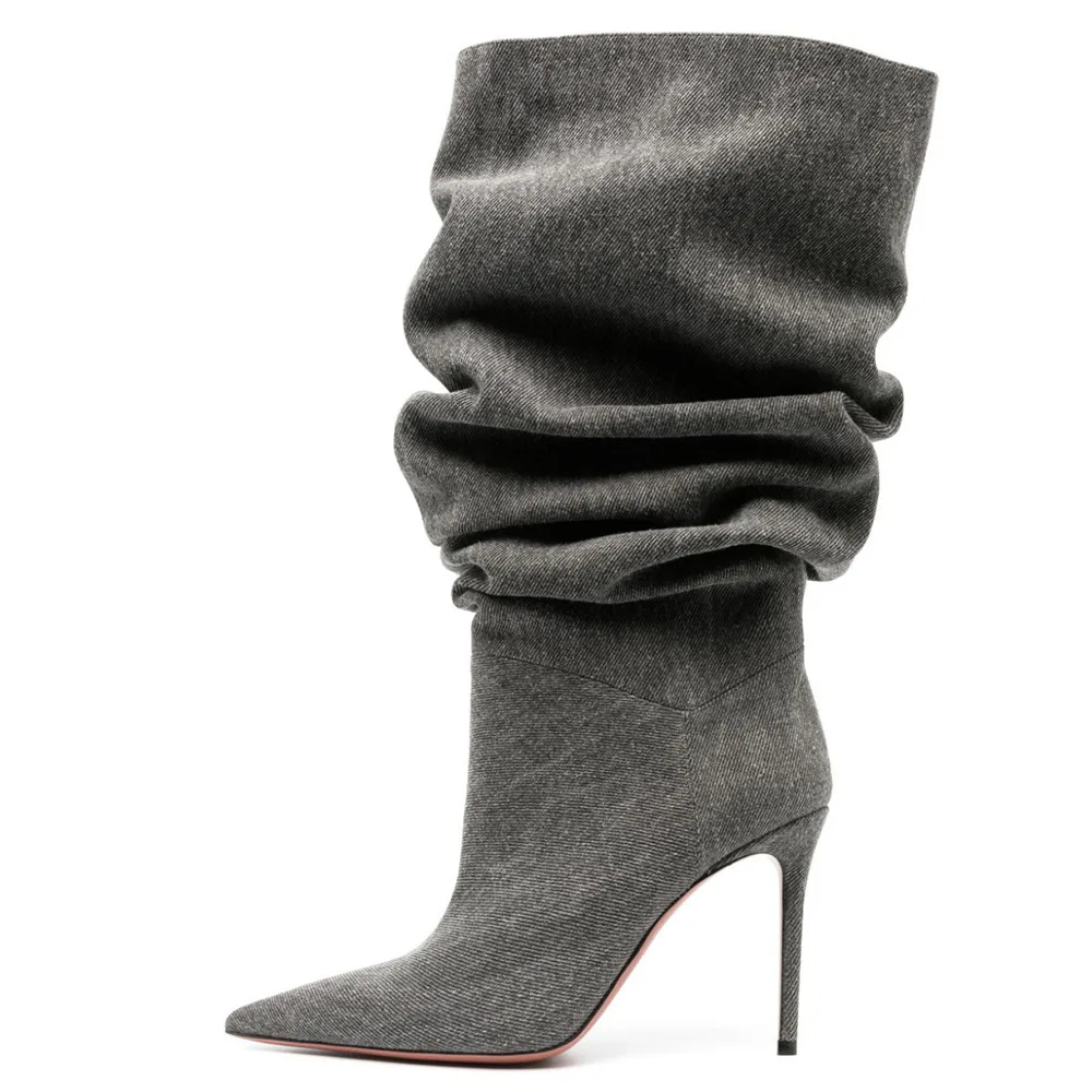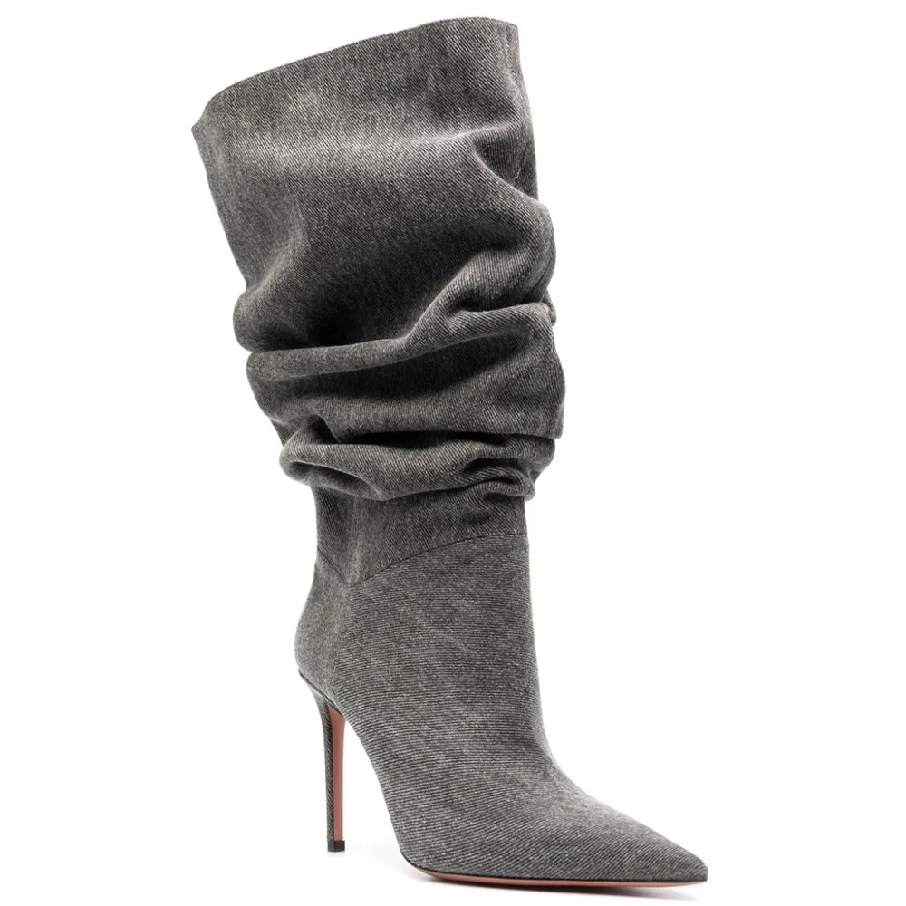 Bottes de cowboy plissées personnalisées pour femmes, bottes antidérapantes au genou pour femmes, bottes à talons hauts pour dames, bottes à plateforme d'hiver, chaussures à talons fins