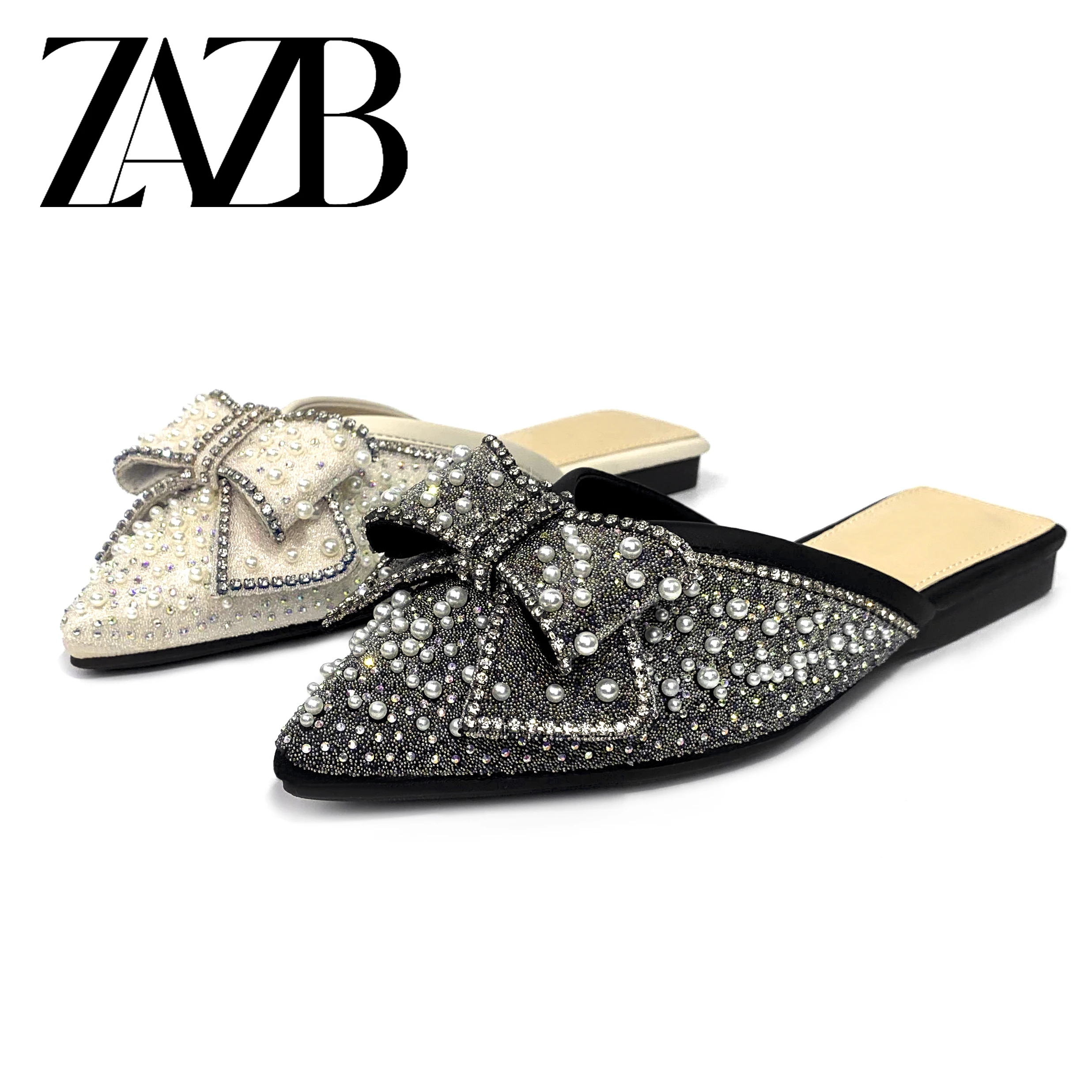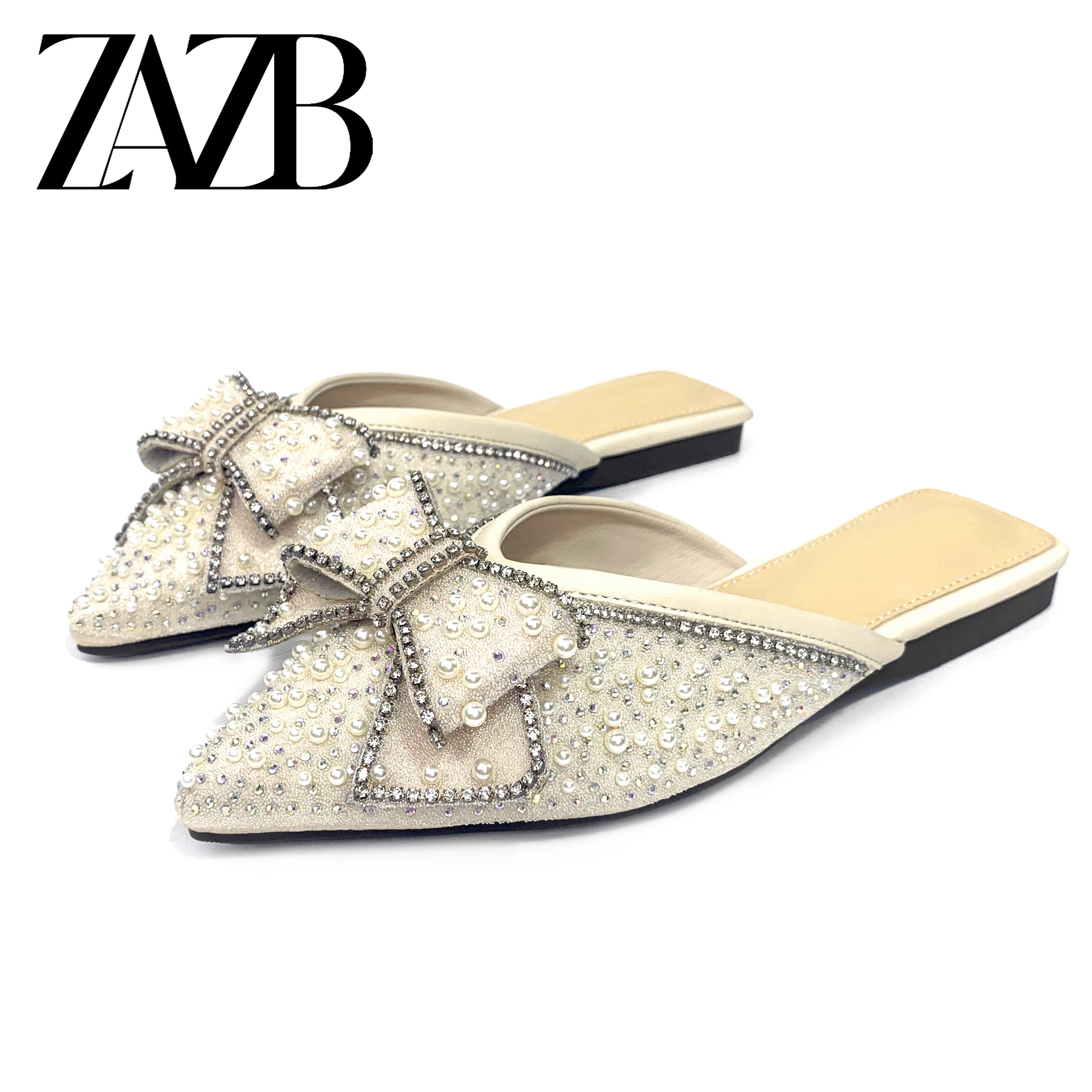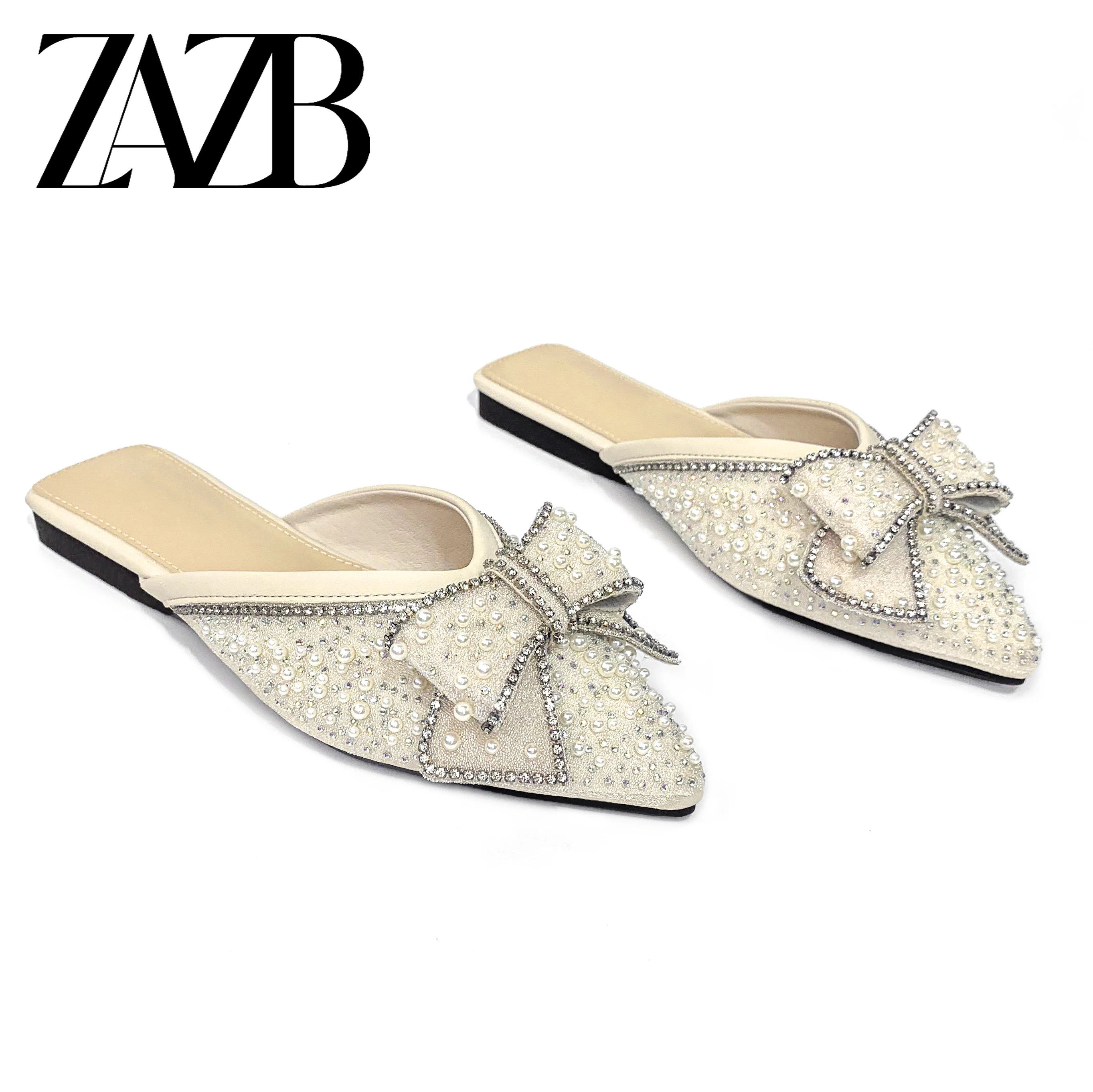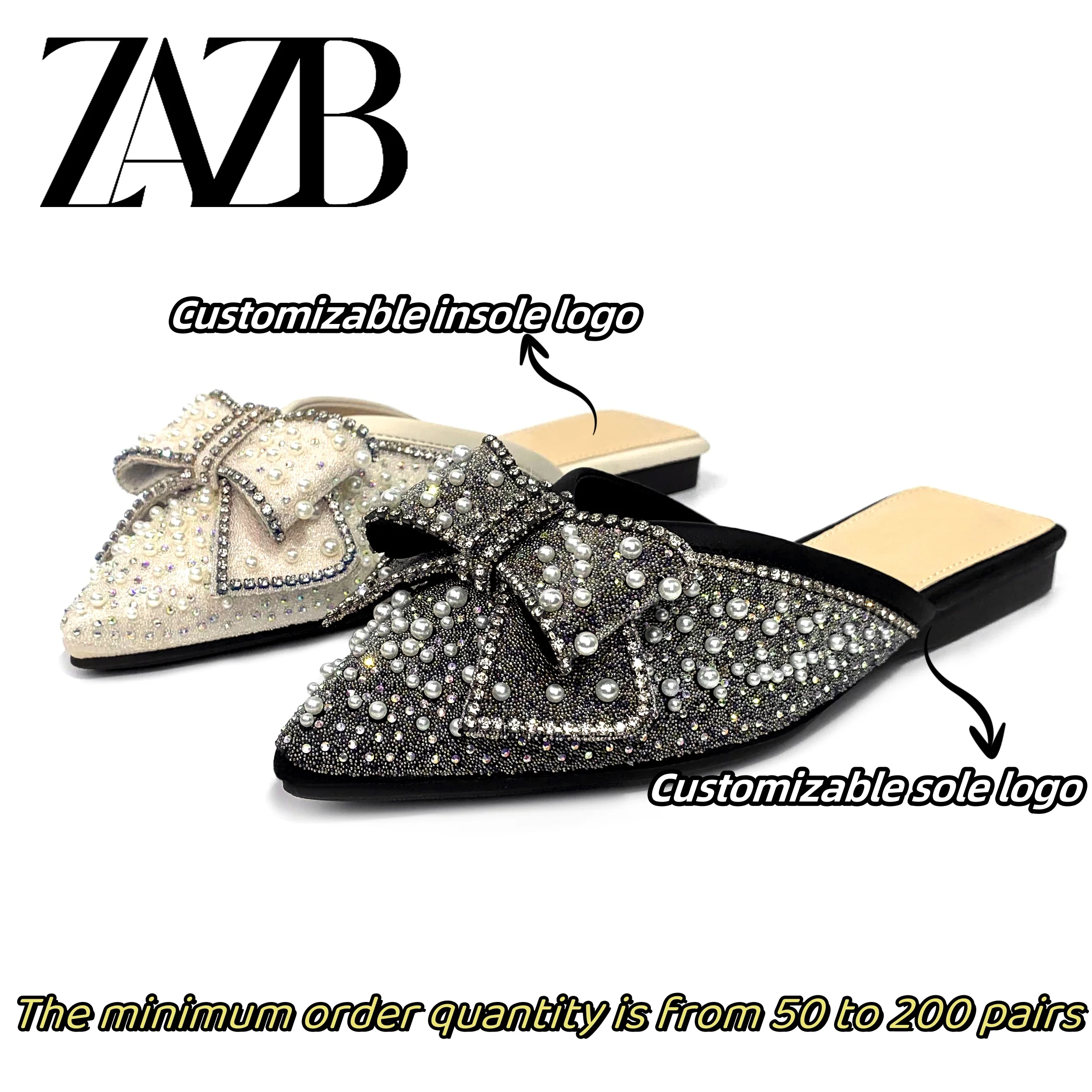 Chaussures de créateur à tête pointue avec nœud en strass personnalisé pour femmes et dames, chaussures plates de luxe pour femmes