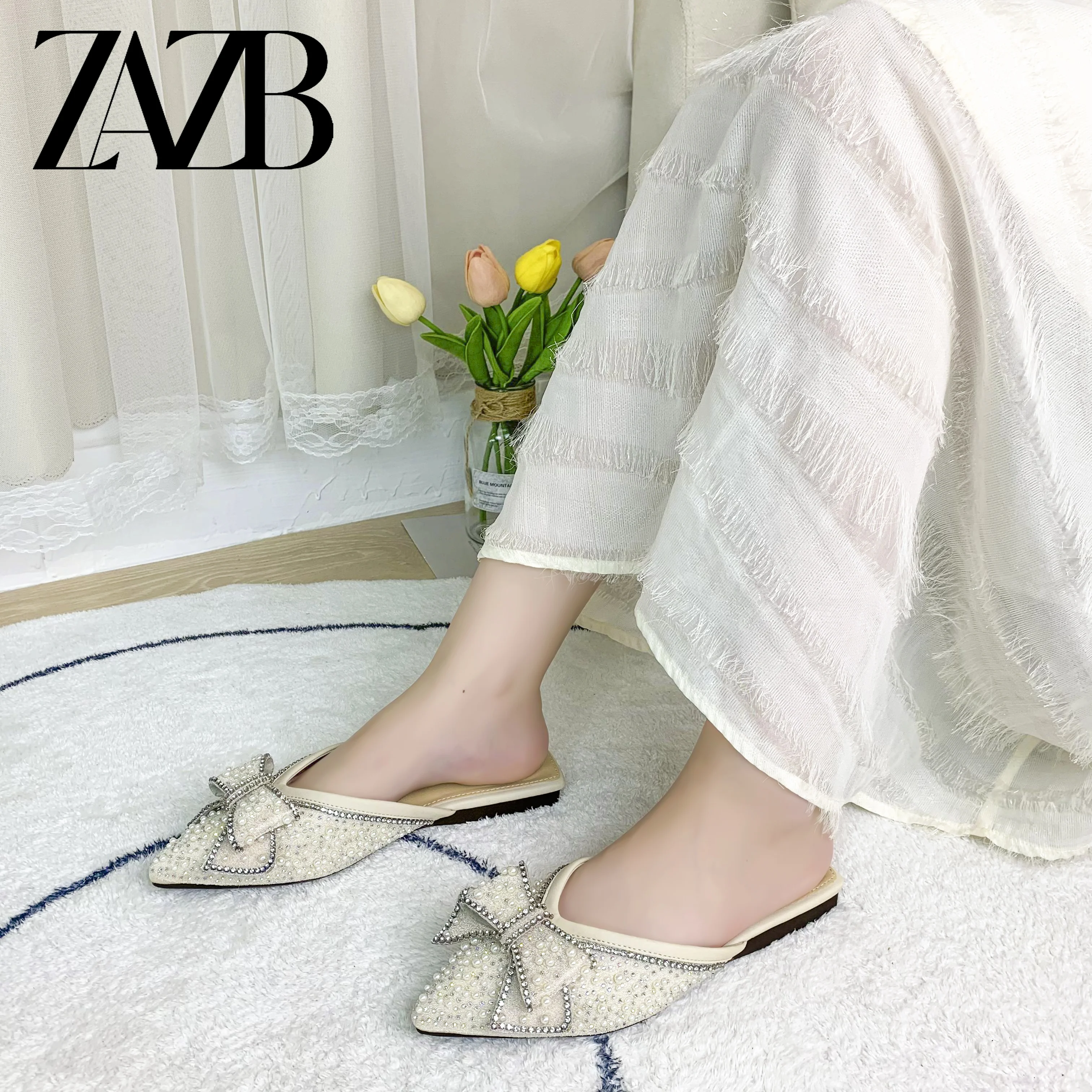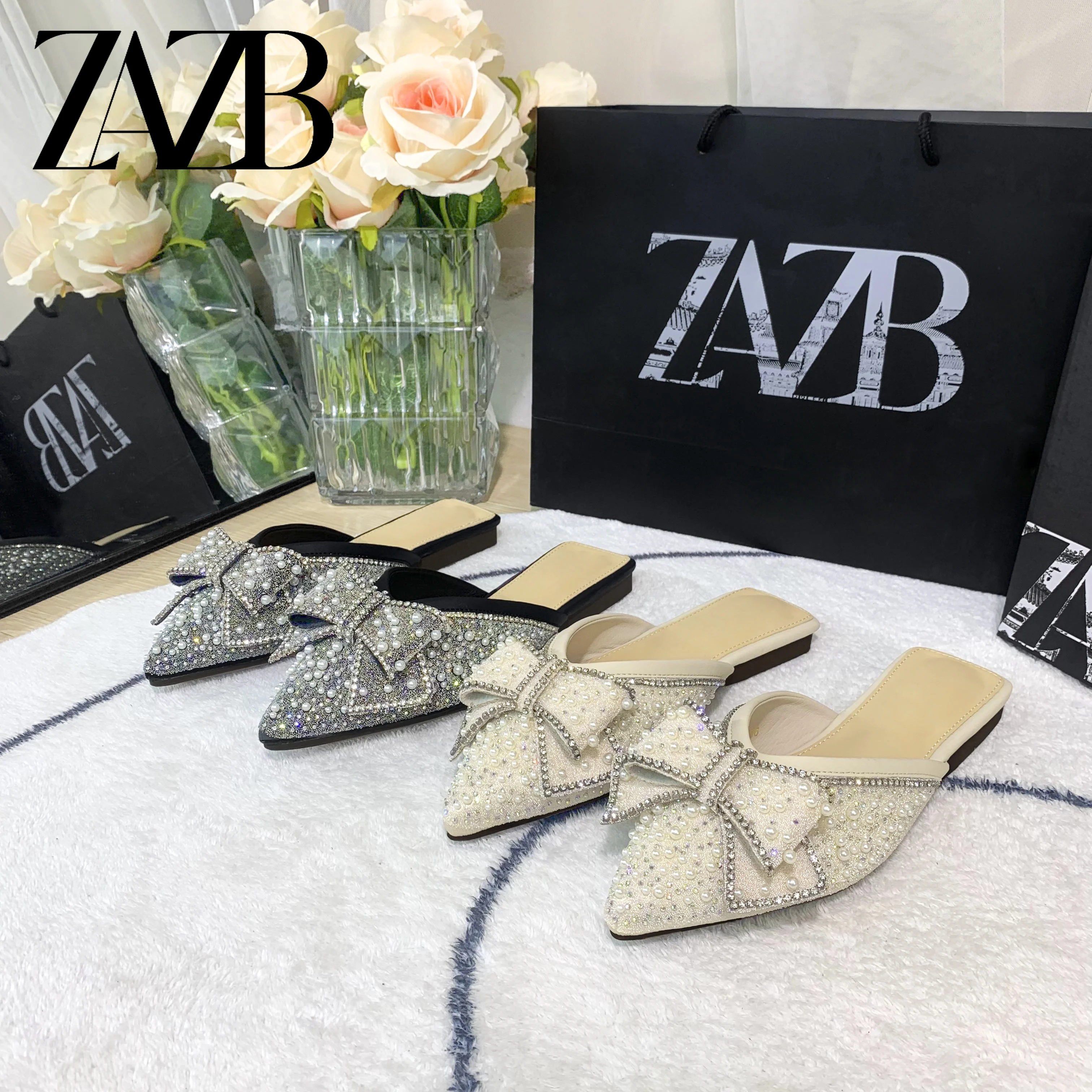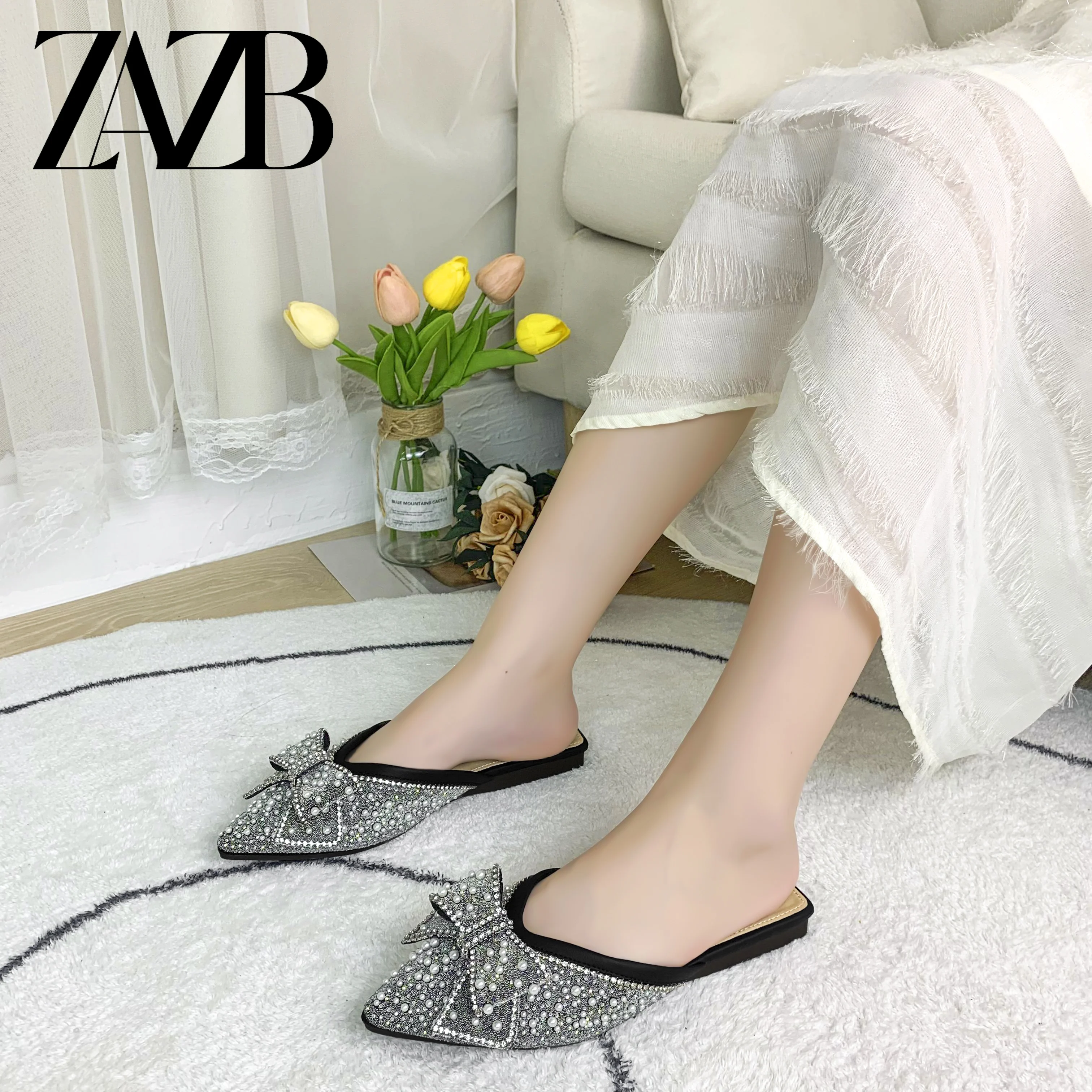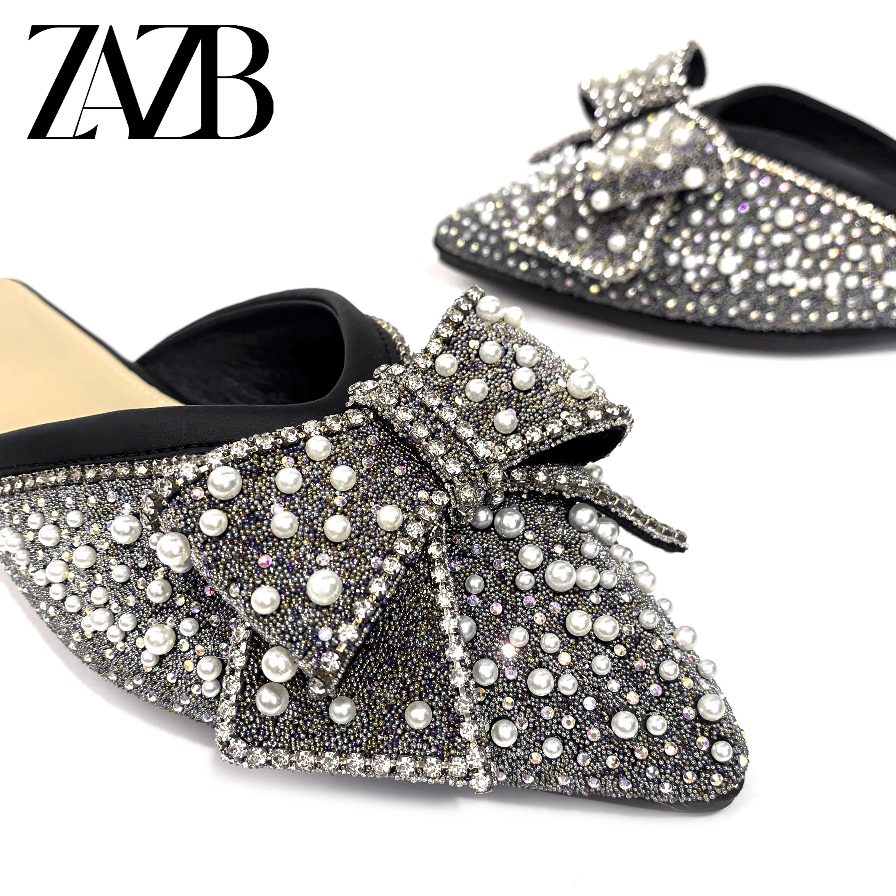 Chaussures de créateur à tête pointue avec nœud en strass personnalisé pour femmes et dames, chaussures plates de luxe pour femmes