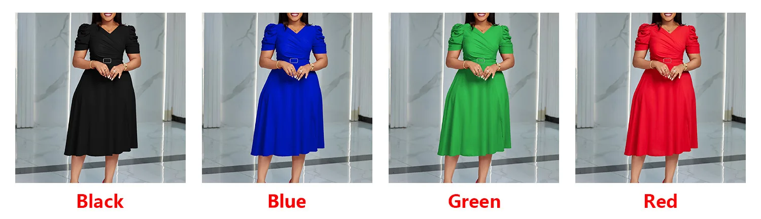 D490 Robe d'été élégante pour femmes, dernière conception, manches courtes, col en V, froncée, coupe trapèze, robes de bureau pour femmes, robes décontractées pour femmes