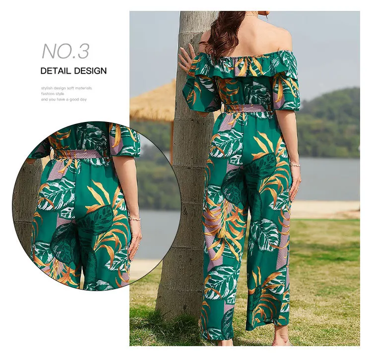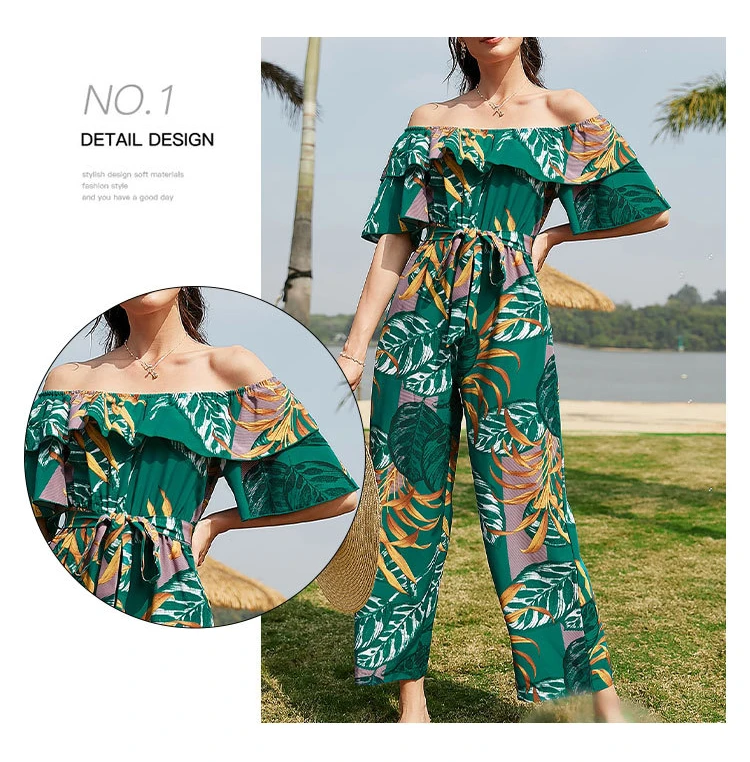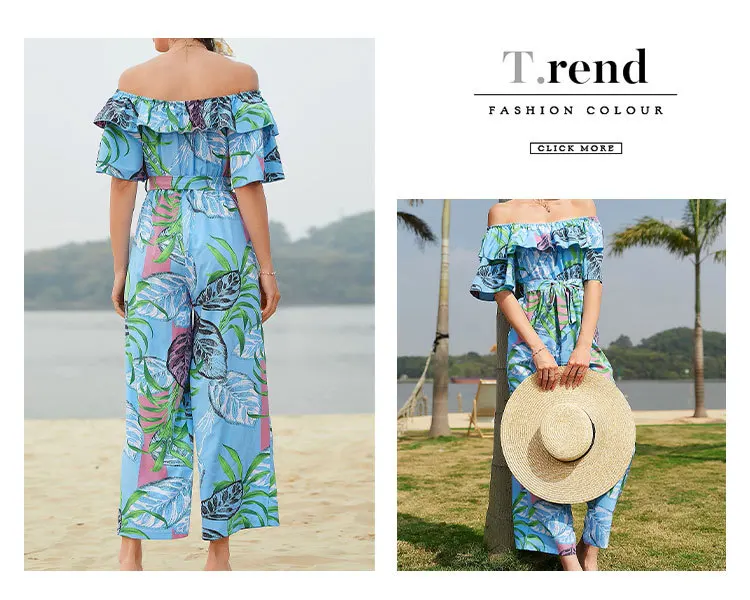 DAMOCHIC Combinaison décontractée pour femmes, sans bretelles, élégante, longue, imprimée, pour la plage, en mousseline de soie, à volants, motif floral, pour femmes, fournisseur en gros 2023