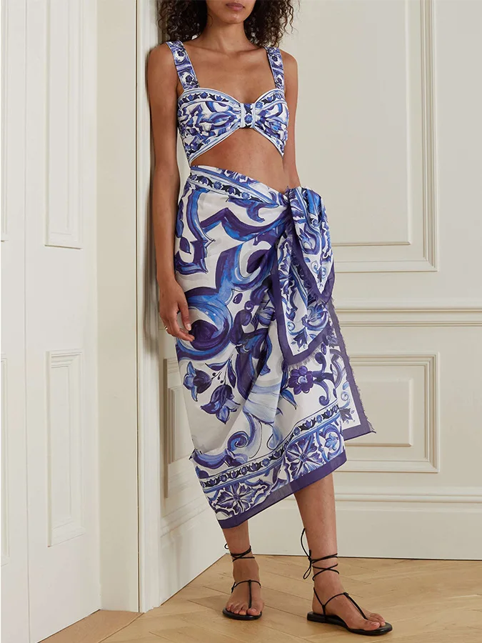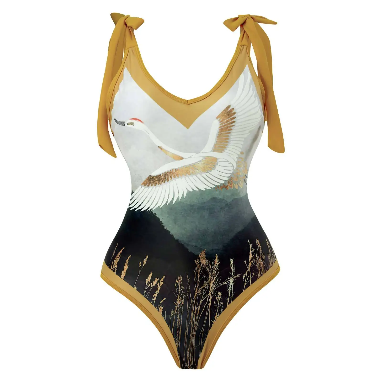 DAMOCHIC Maillot de bain une pièce jupe portefeuille Jupe portefeuille de plage rétro slim à imprimé d'été Maillot de bain bandage 1 pièce et jupe portefeuille 2023