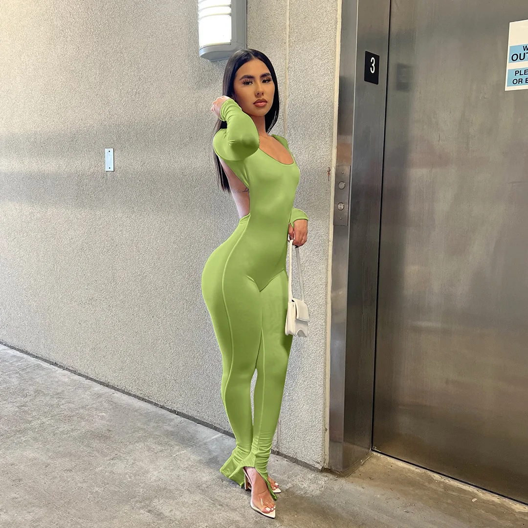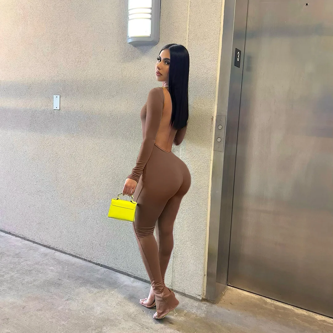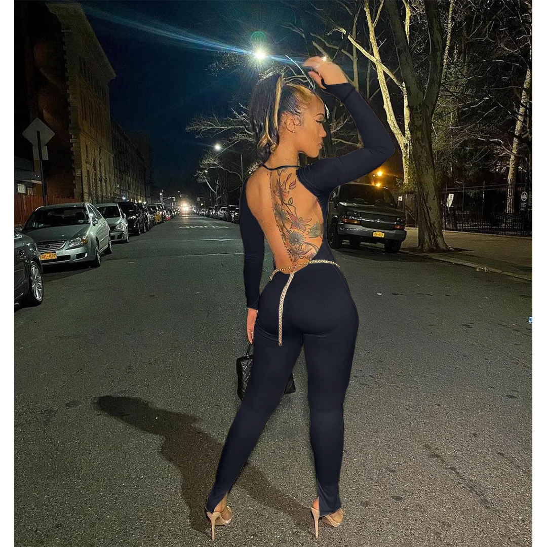 DAMOCHIC Combinaisons décontractées pour femmes, combinaisons sexy, moulantes, dos nu, manches longues, automne, fournisseur en gros