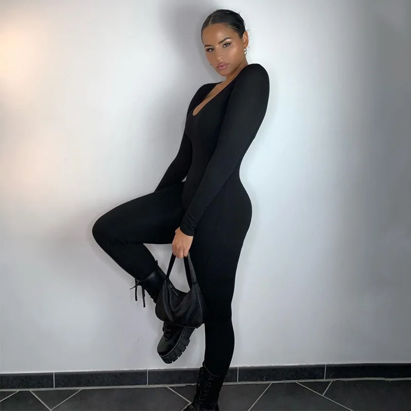 DAMOCHIC Femmes Modeste Combinaisons Skinny Manches Longues Combishort Printemps Été Combinaisons Élégant Sexy Bodycon Body Combinaisons Grossiste