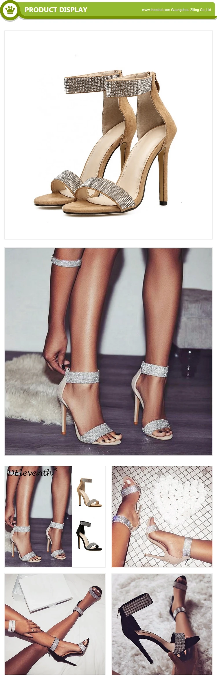 Deleventh shoes 101977 Chaussures habillées pour femmes en gros Sandales à talons zippés Chaussures à talons hauts Chaussures de fête Noir Abricot Talons strass