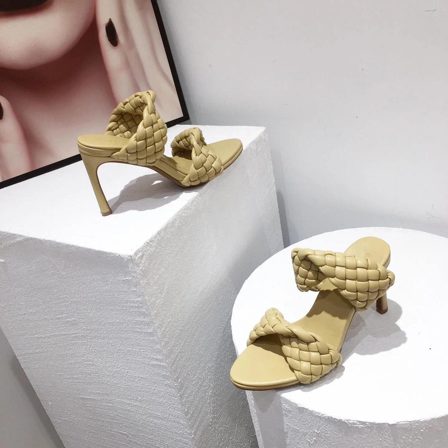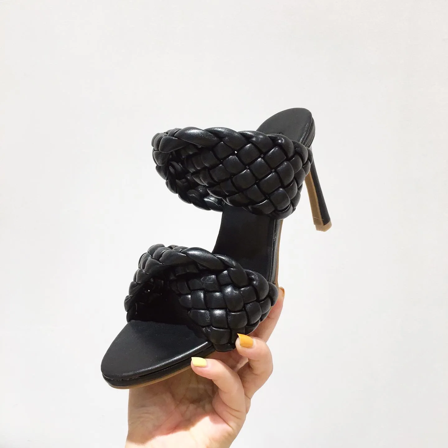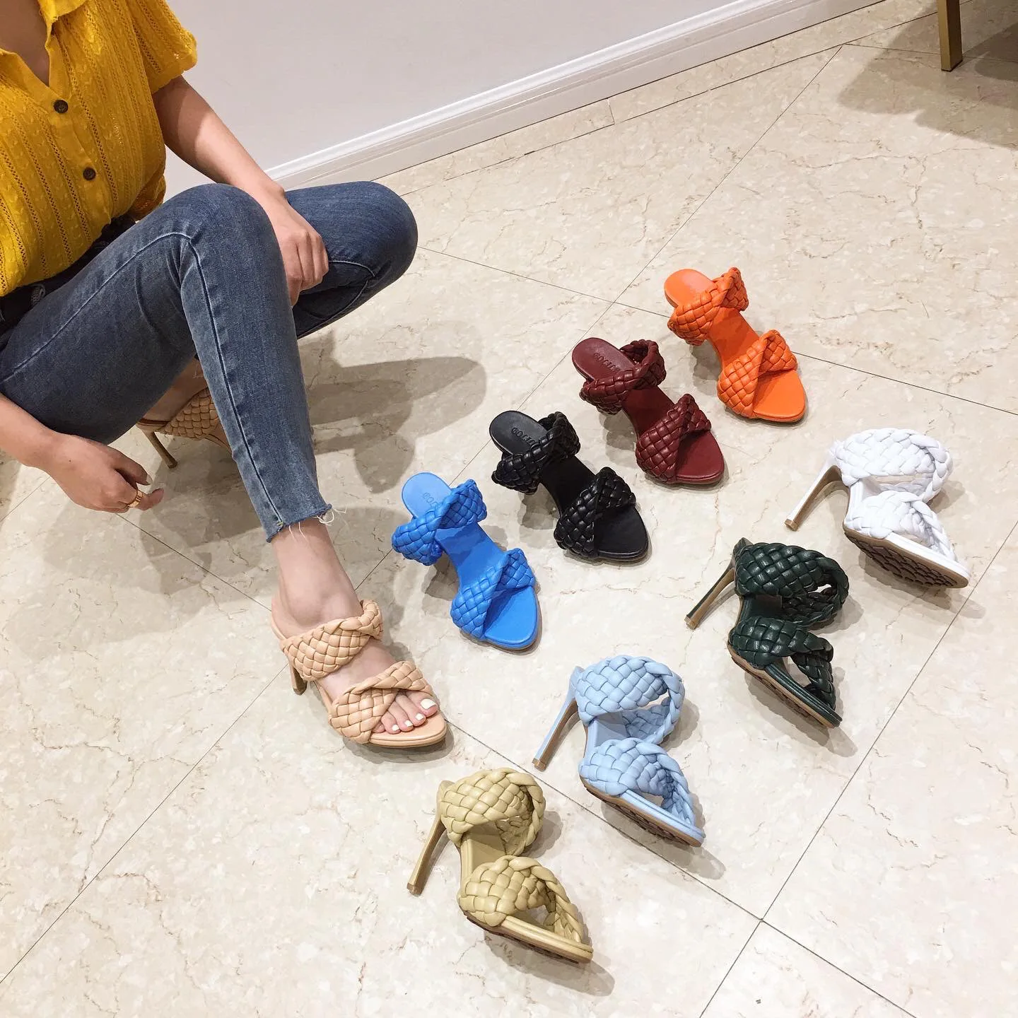 Chaussures à talons aiguilles de créateur pour femmes, sandales, pantoufles, diapositives à bout pointu, talons pour dames, mules tressées Zapatos Altos