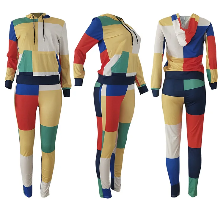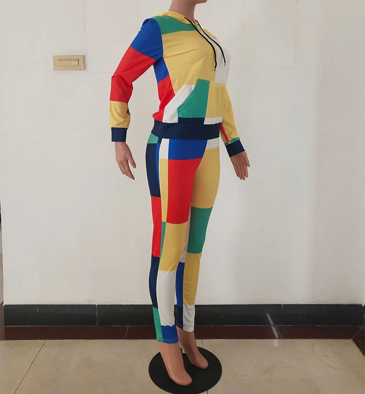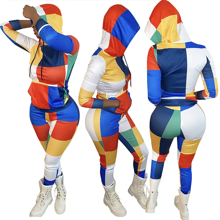 Ensemble deux pièces imprimé numérique pour femme, streetwear, patchwork, manches longues, pull, sweat à capuche, veste, pantalon long, survêtement, jogging