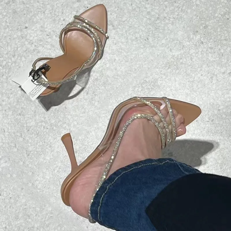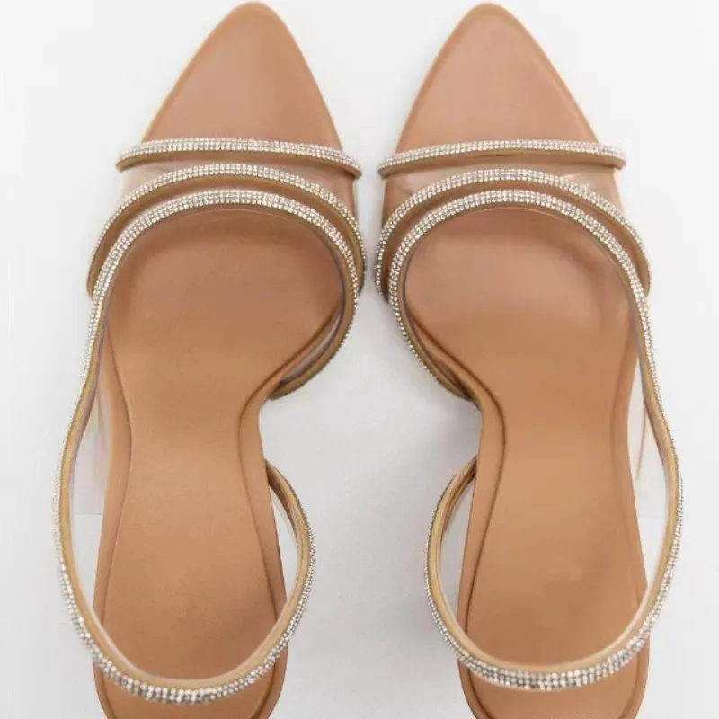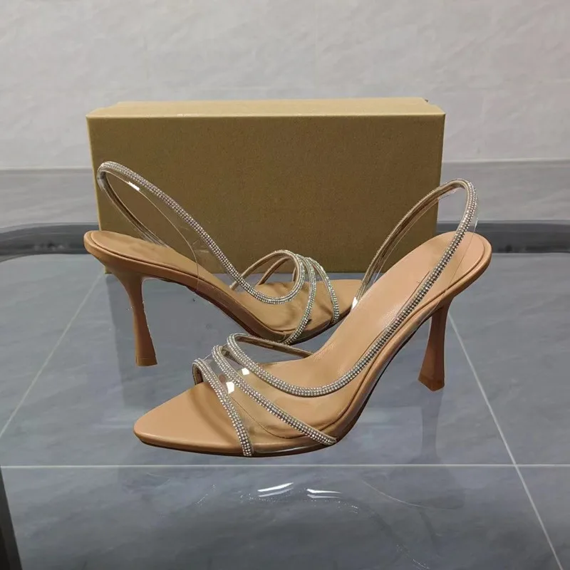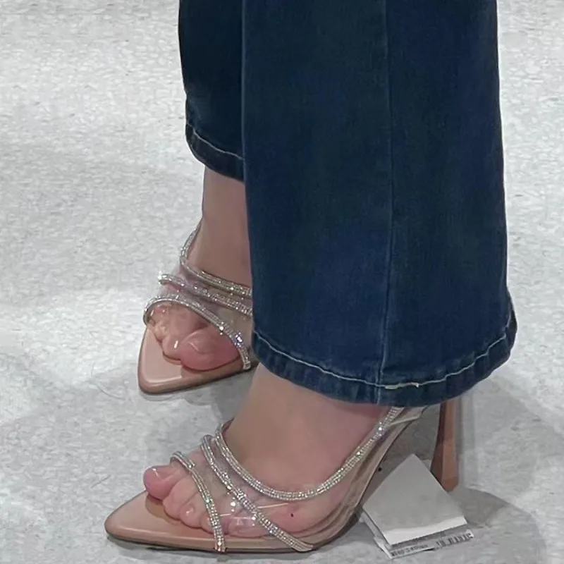 Chaussures à talons pointus sexy avec logo personnalisé, sandales à talons hauts en PVC pour femmes