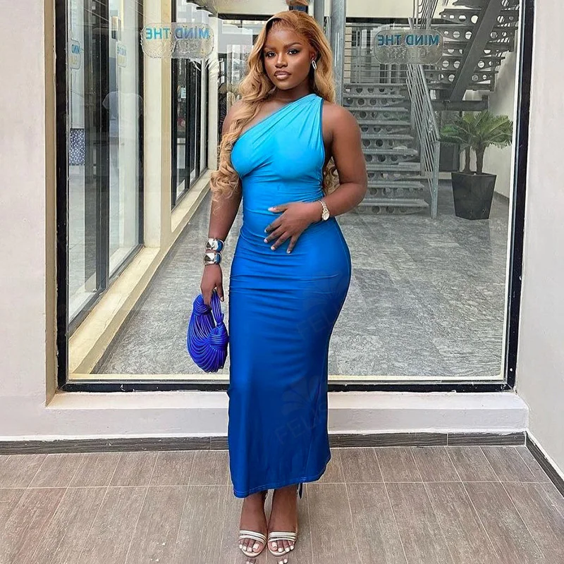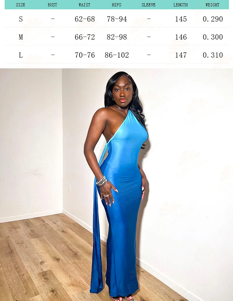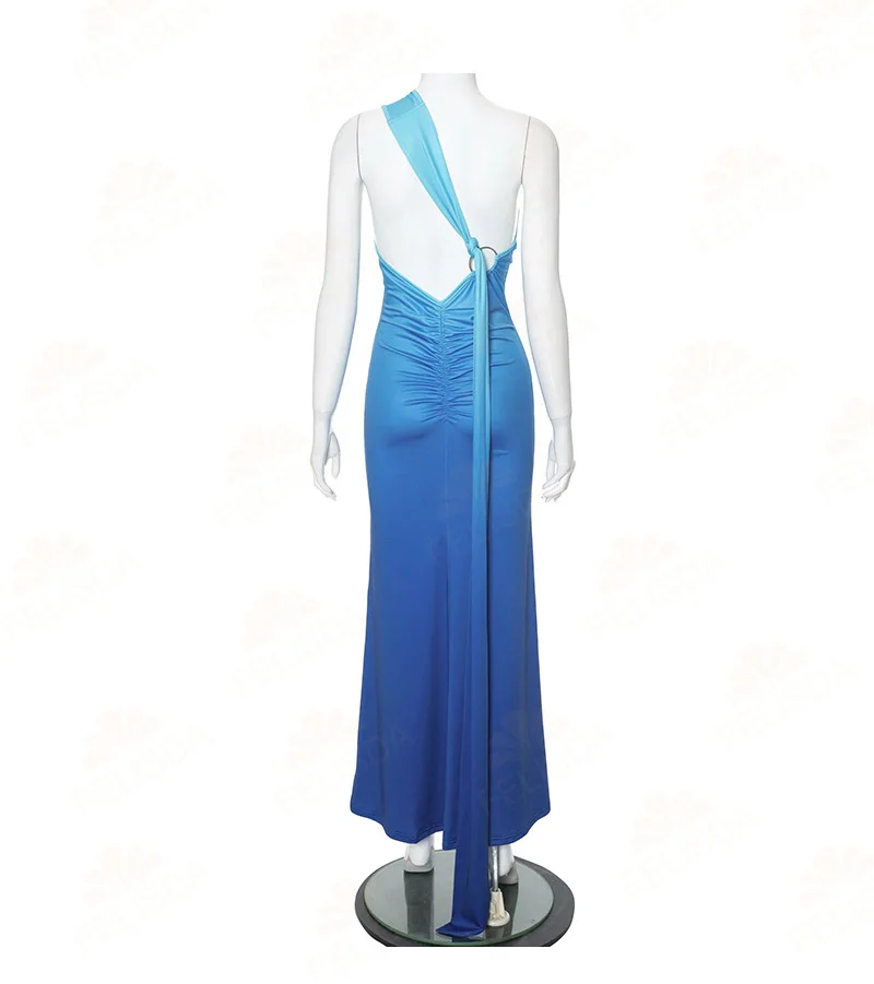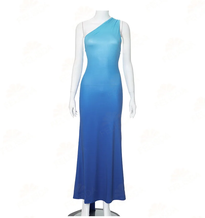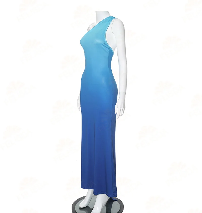 Robe longue élégante à une épaule sans manches et dégradée pour femme, tenue sexy à col roulé et dos nu, idéale pour les soirées et les boîtes de nuit