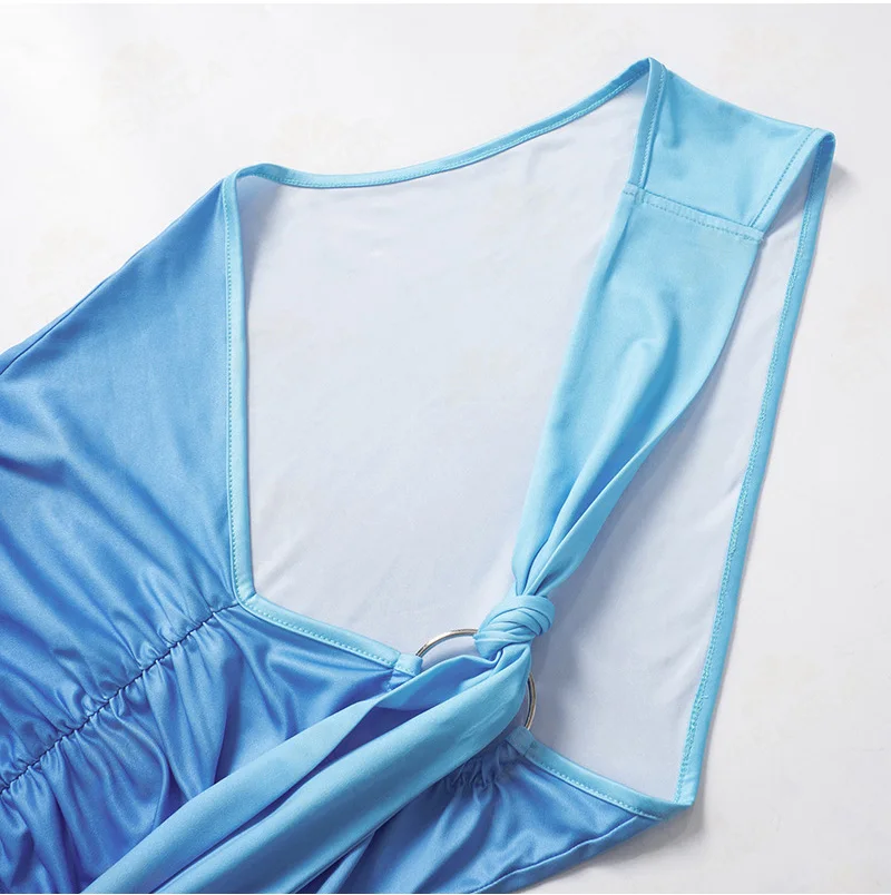 Nom du produit : Robe mini sexy pour femme, tenue décontractée sans manches pour soirée en boîte de nuit .