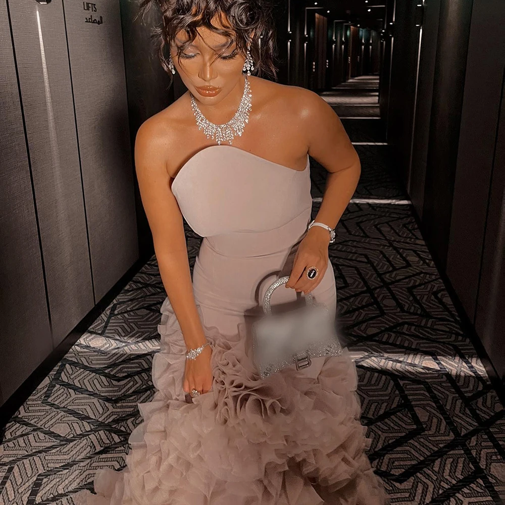 Robe de soirée sirène élégante en tulle lilas pour femmes arabes, tenue de soirée longue violette, Sf107-2