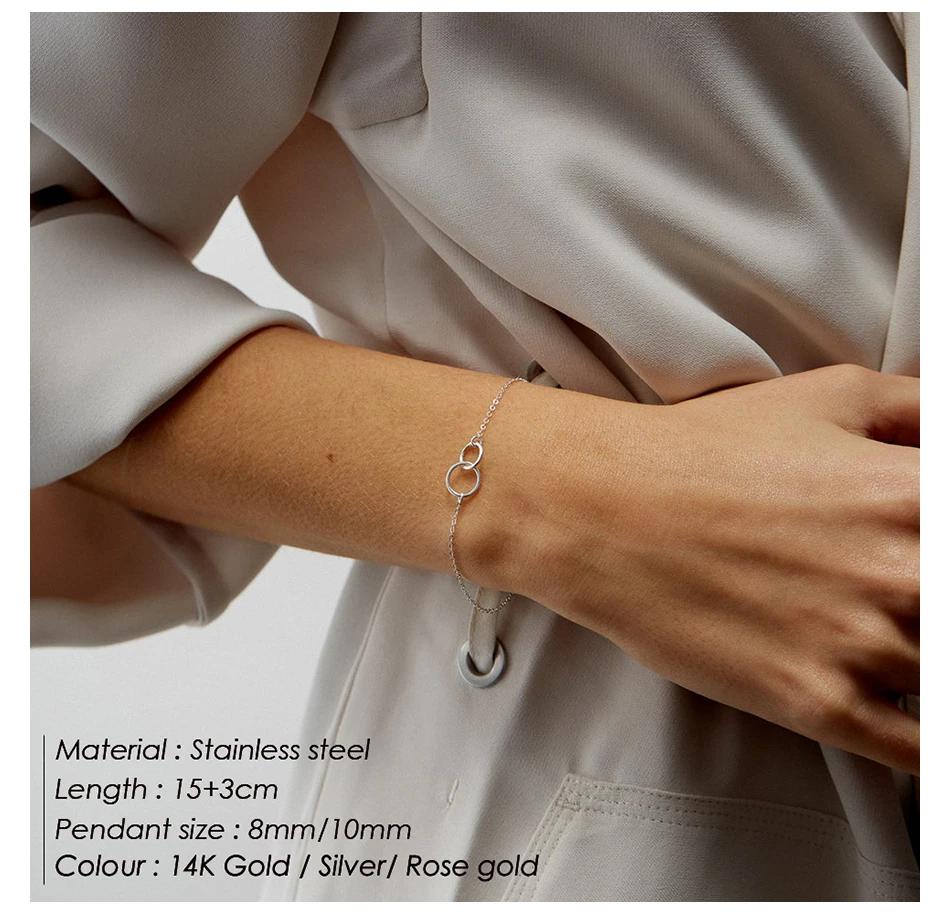 Bracelet eManco à double cercle martelé, très populaire, en acier titane et inoxydable