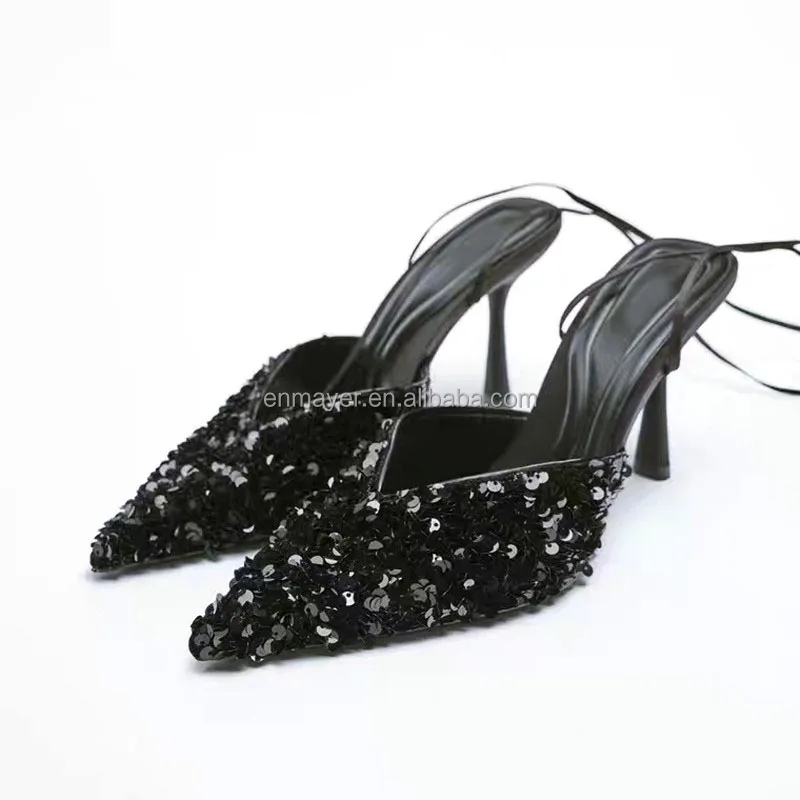 ENMAYER usine fournit grande taille disponible paillettes tissu Bling Bling femmes chaussures habillées