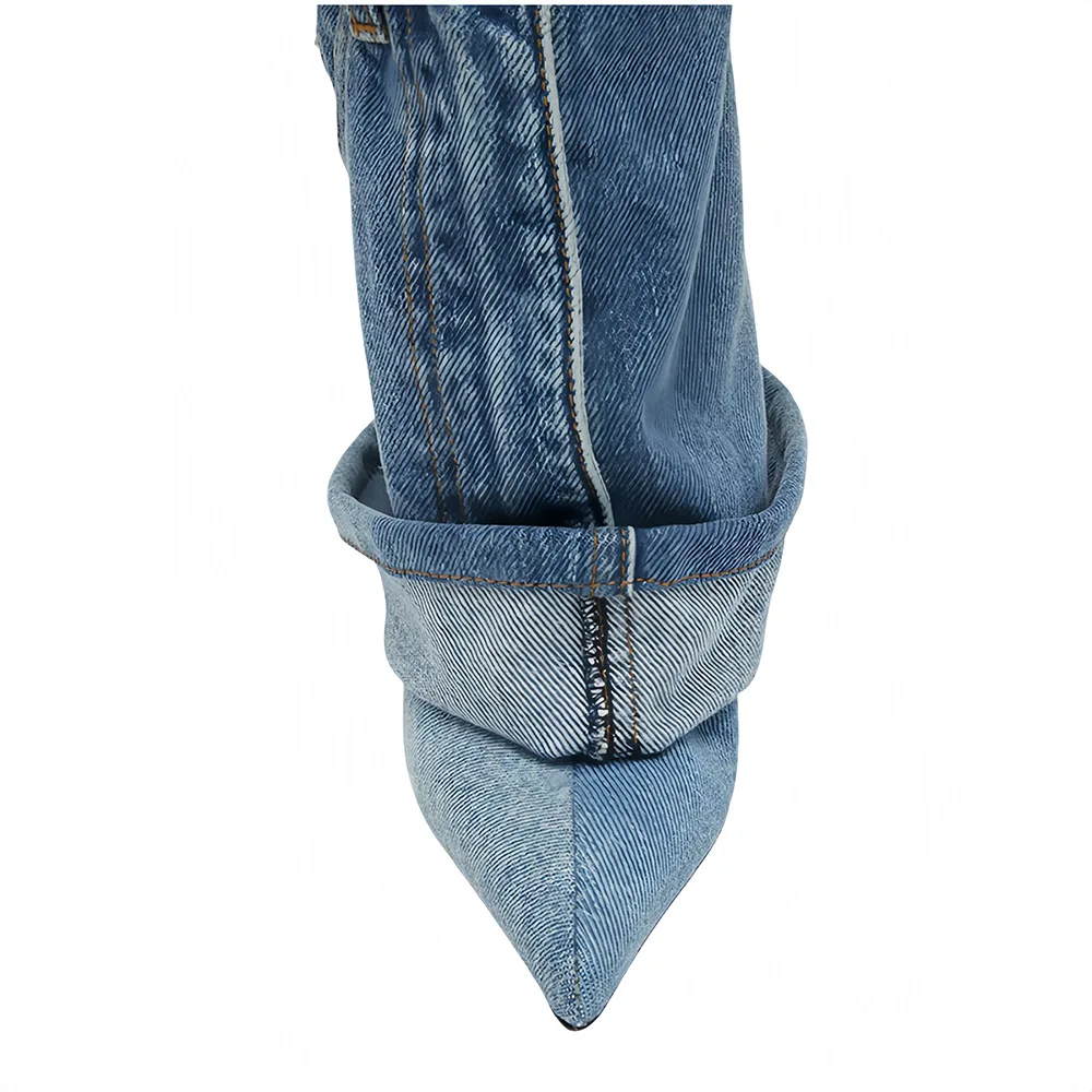 Bottes pour femmes en denim de haute qualité, personnalisées en usine, livraison directe