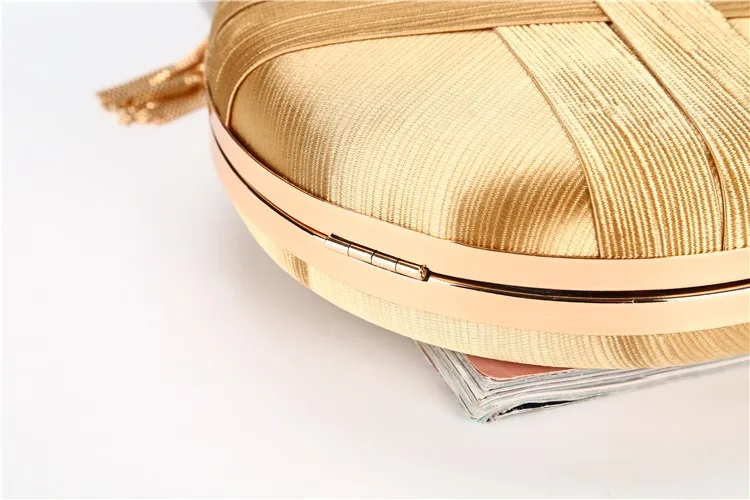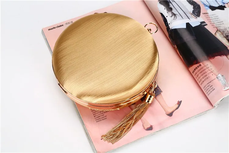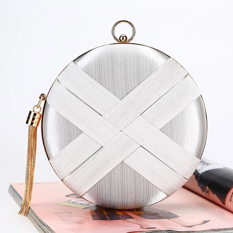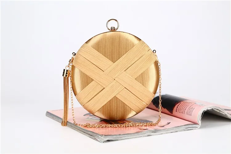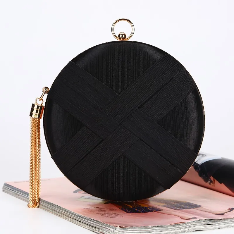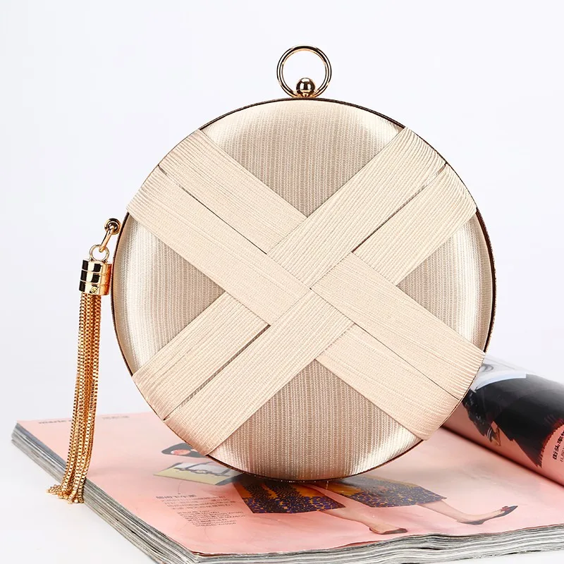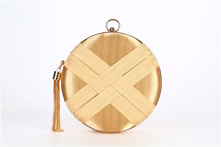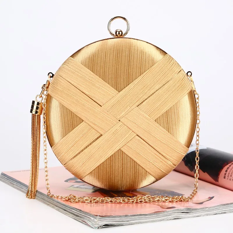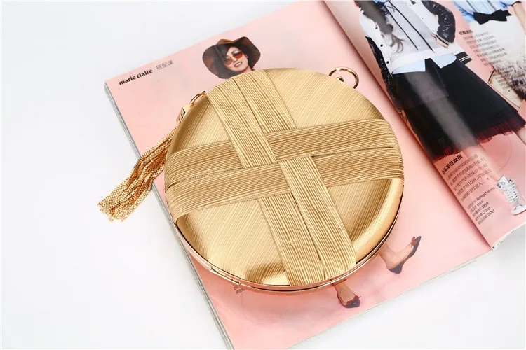 Sac de soirée rond en soie tissée, pochettes en métal à pompon, vente en gros directe d'usine, nouveau style, sacs à main pour femmes, fête, banquet, mariage