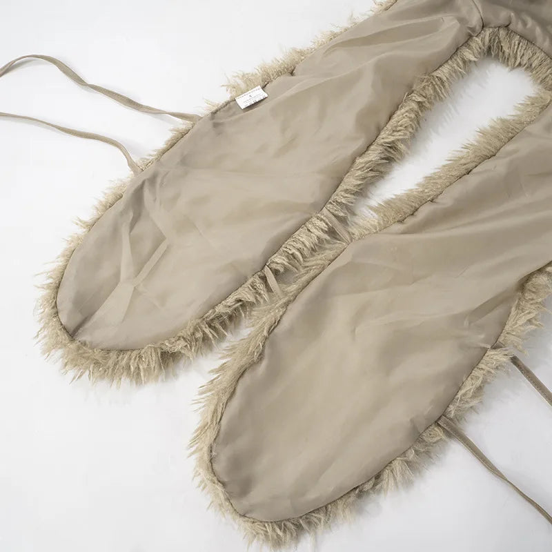FAGADOER Sexy Fur Patchwork Woman 2 Piece Set Outfit Deep V Backless Lace Up Crop Top + Leopard Print Pants Female Streetwear