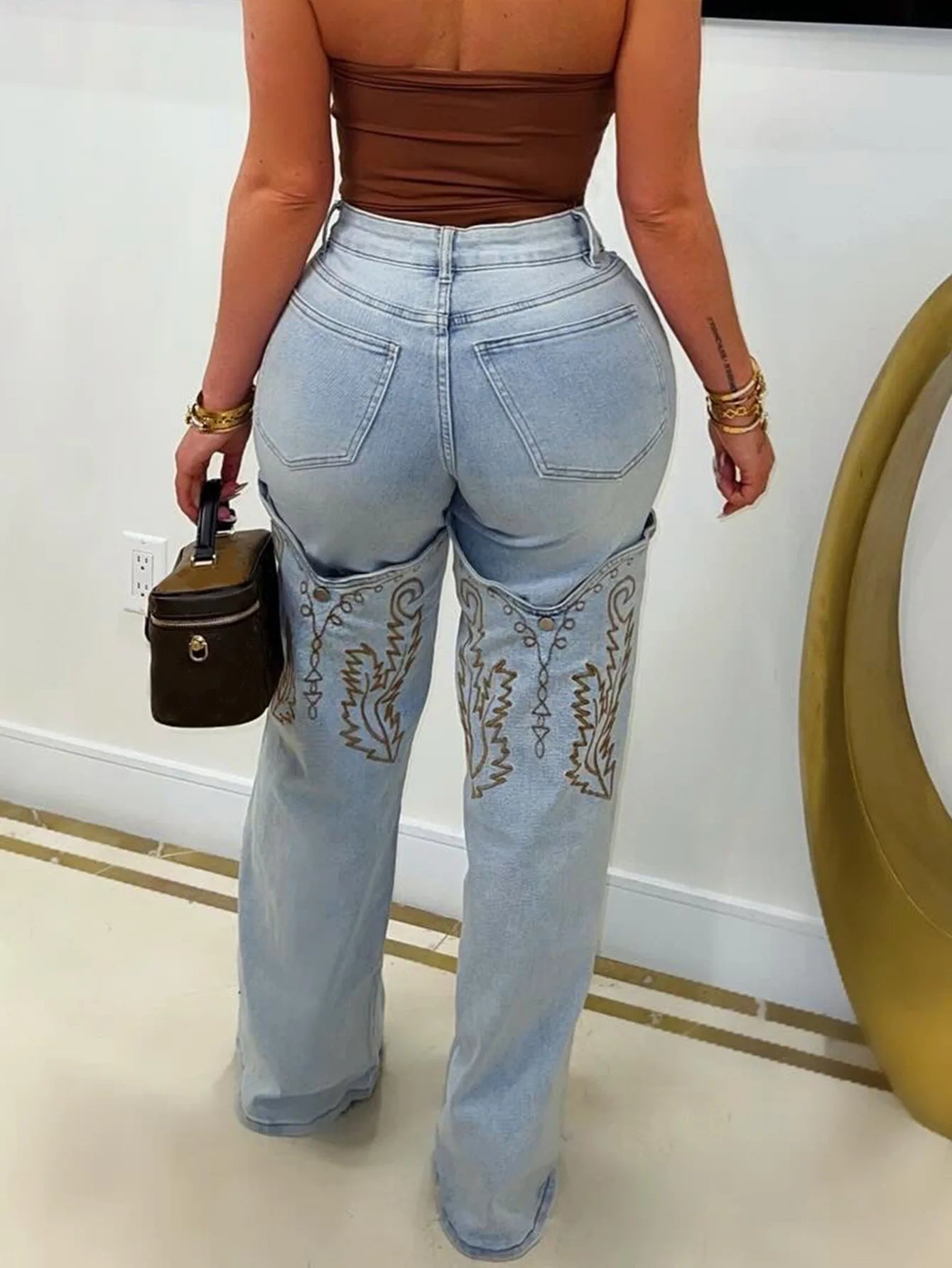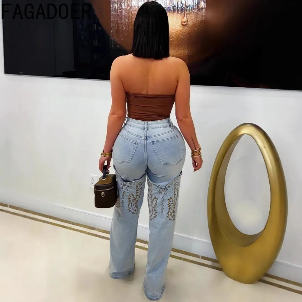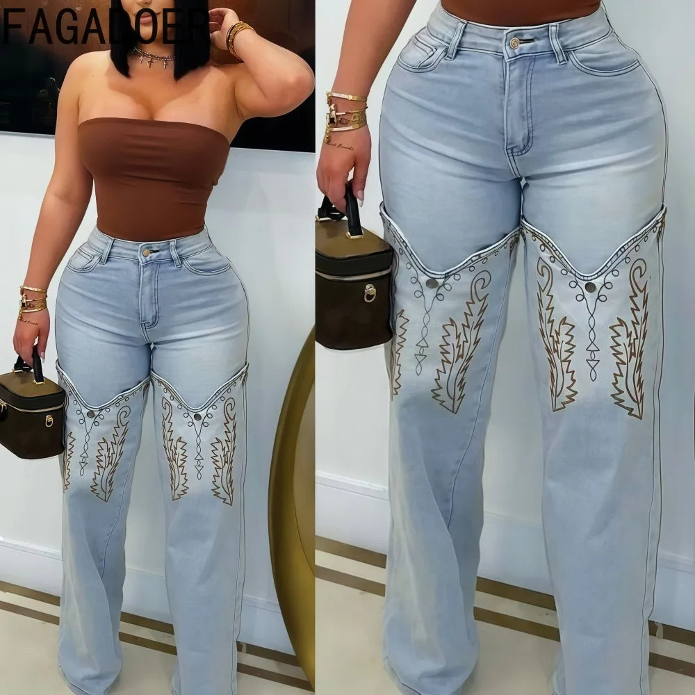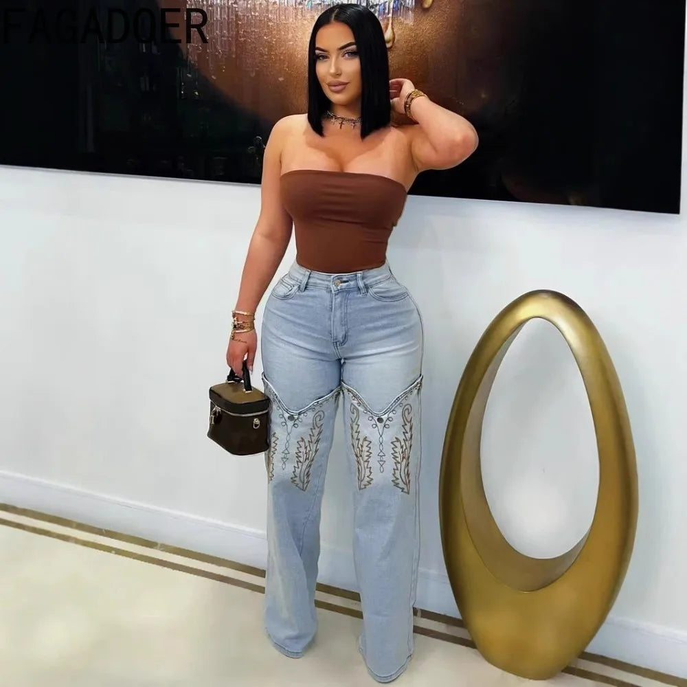 FAGADOER Y2k Fashion Embroidery Denim Straight Leg Pants Women 2025 Summer New Retro Washed Jeans Straight Trousers Streetwear