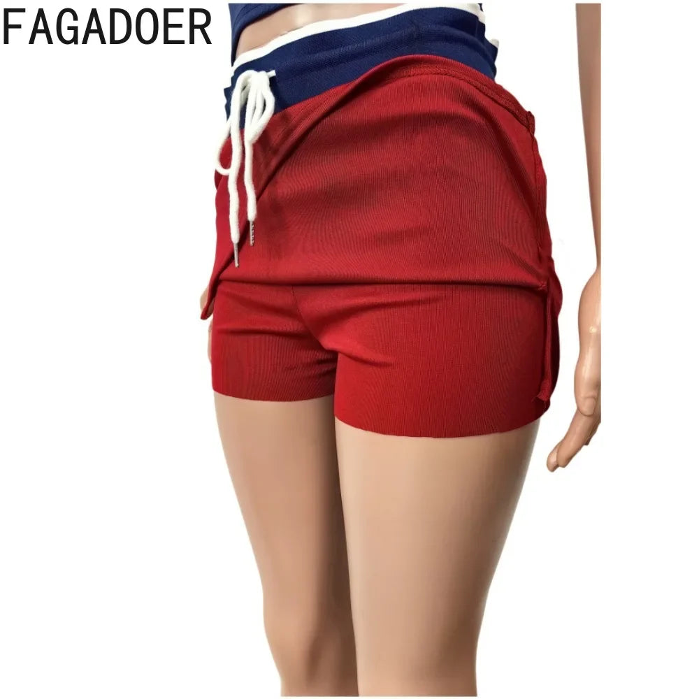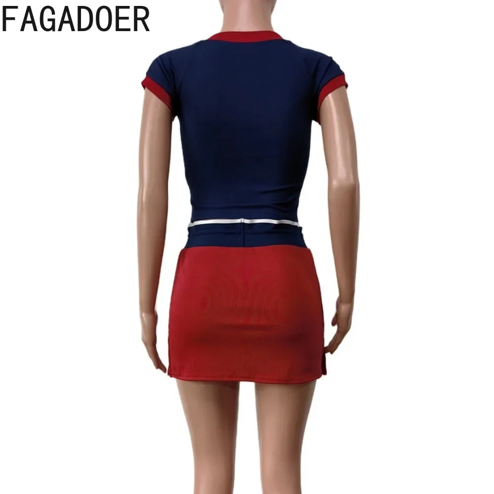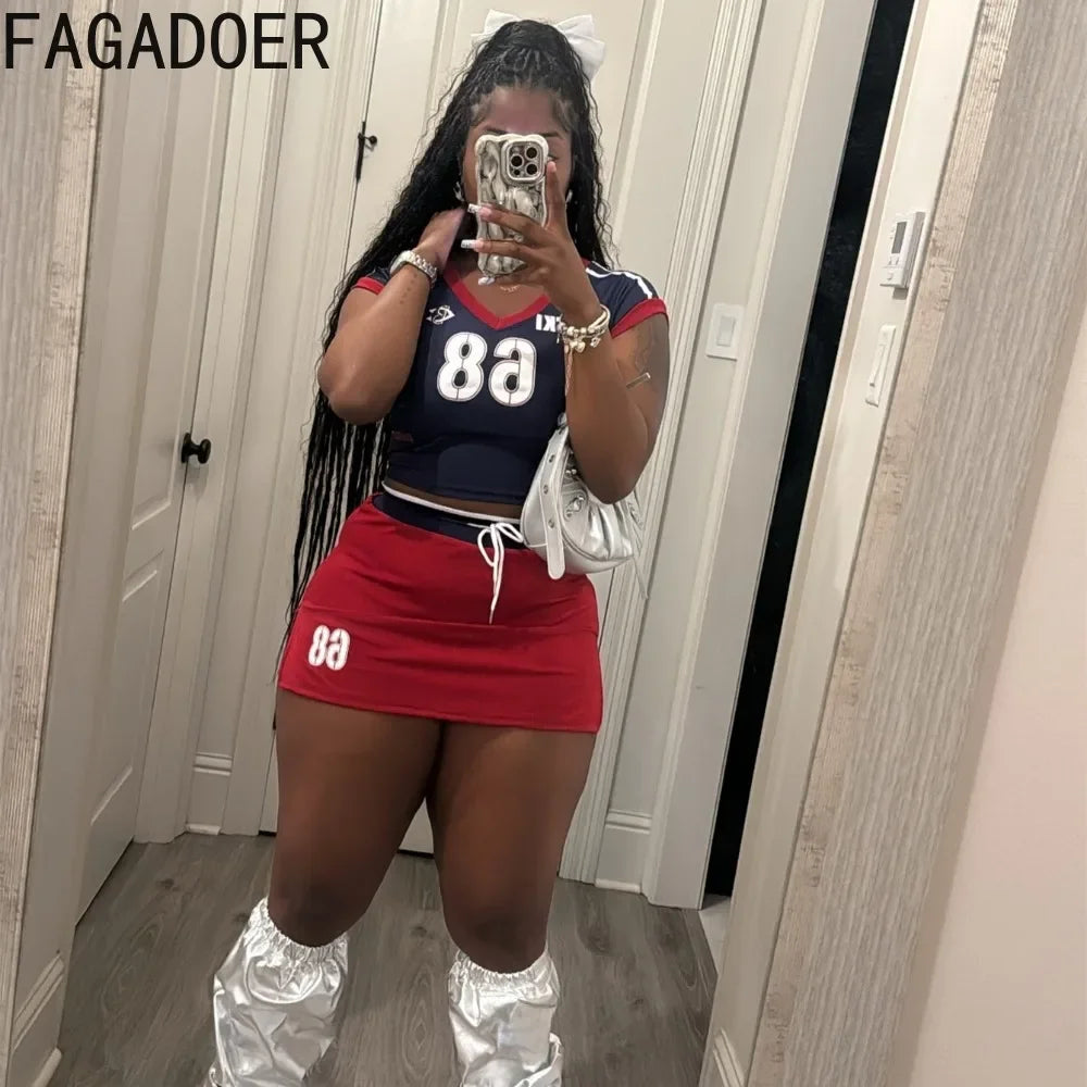 FAGADOER Y2K Letter Print 2 Piece Sets Women Outfit Fashion V Neck Crop Tops And Drawstring High Waist Skirt Hot Girl Streetwear