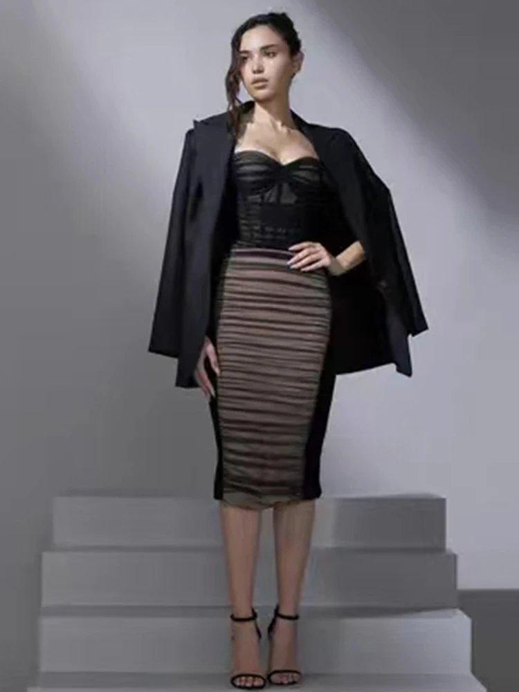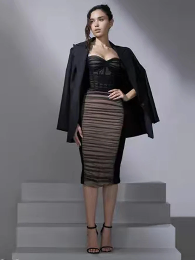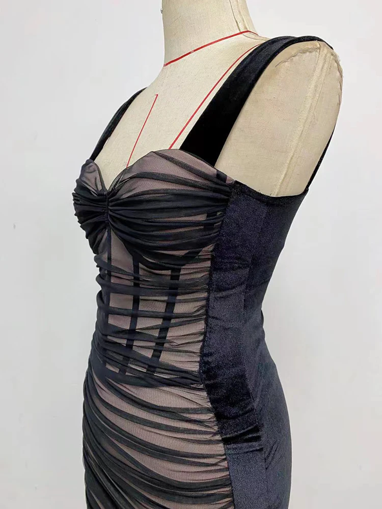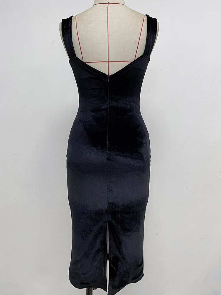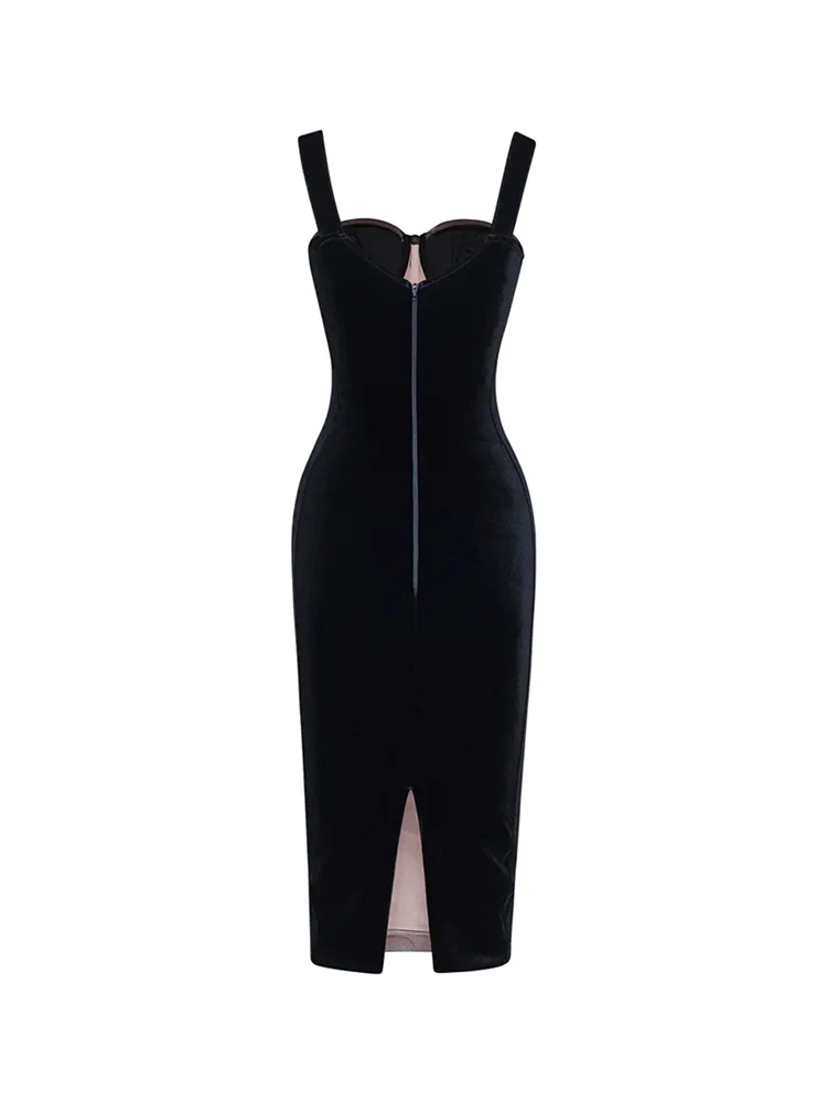 Fall New Women's Halter Heart-Shaped Neckline Velvet Lace Bag Hip Sexy Knee-Length Dress Luxury Temperament Party Evening Dress