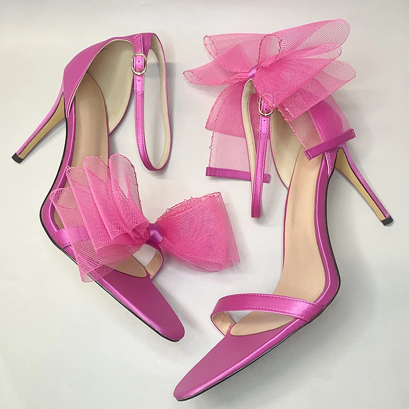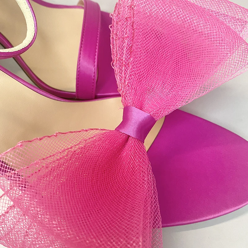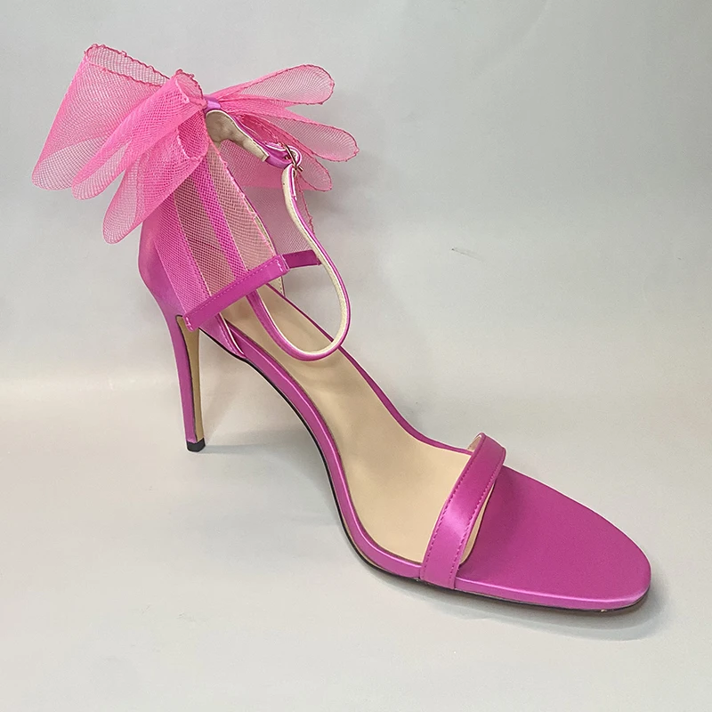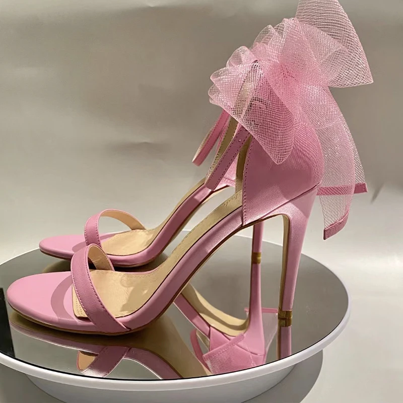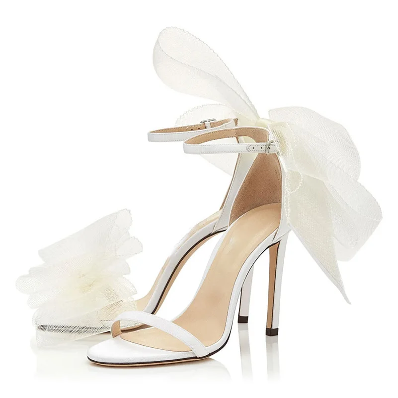 Sandales à talons hauts et fins pour femmes, chaussures d'été à nœud en plumes, chaussures de fête et de mariage, 2022