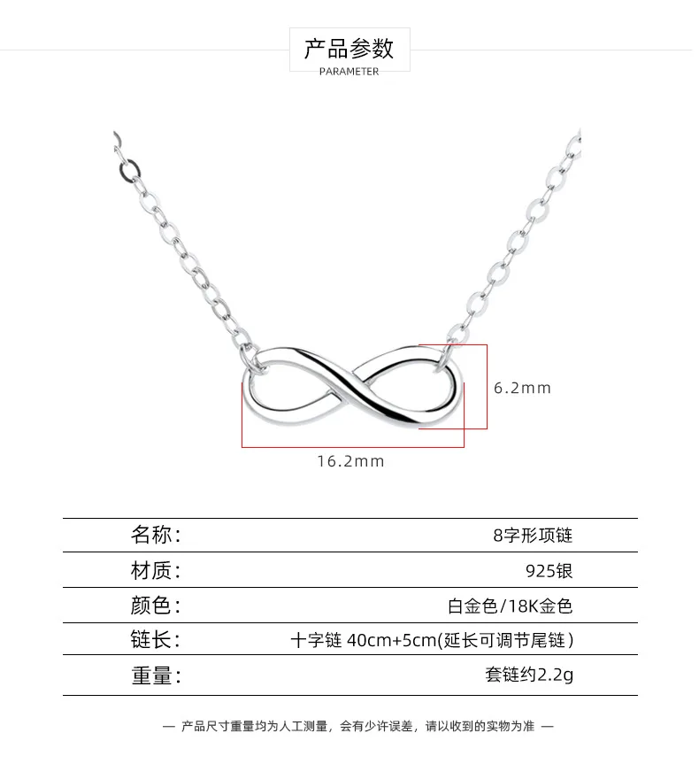 Bijoux minimalistes tendance en argent sterling 925, pendentif simple en forme de huit, colliers plaqués or pour femmes