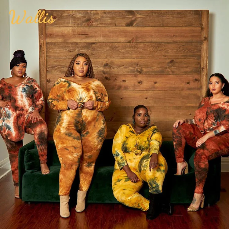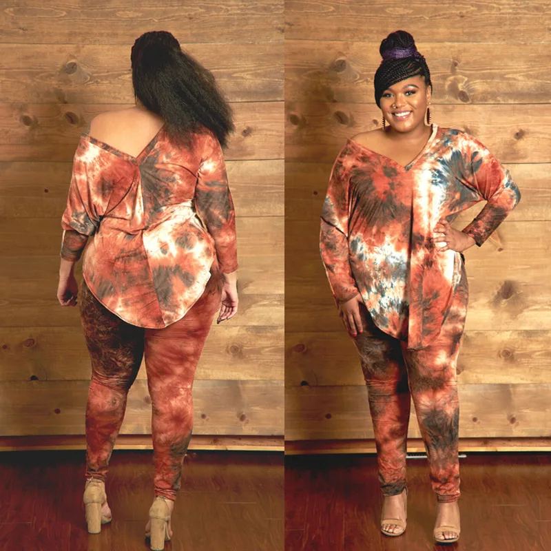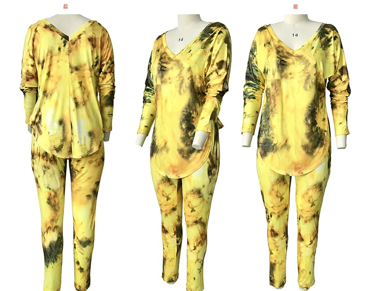 Ensemble deux pièces de survêtement pour femme, jogging, t-shirt surdimensionné à col en V, imprimé tie-dye, manches longues