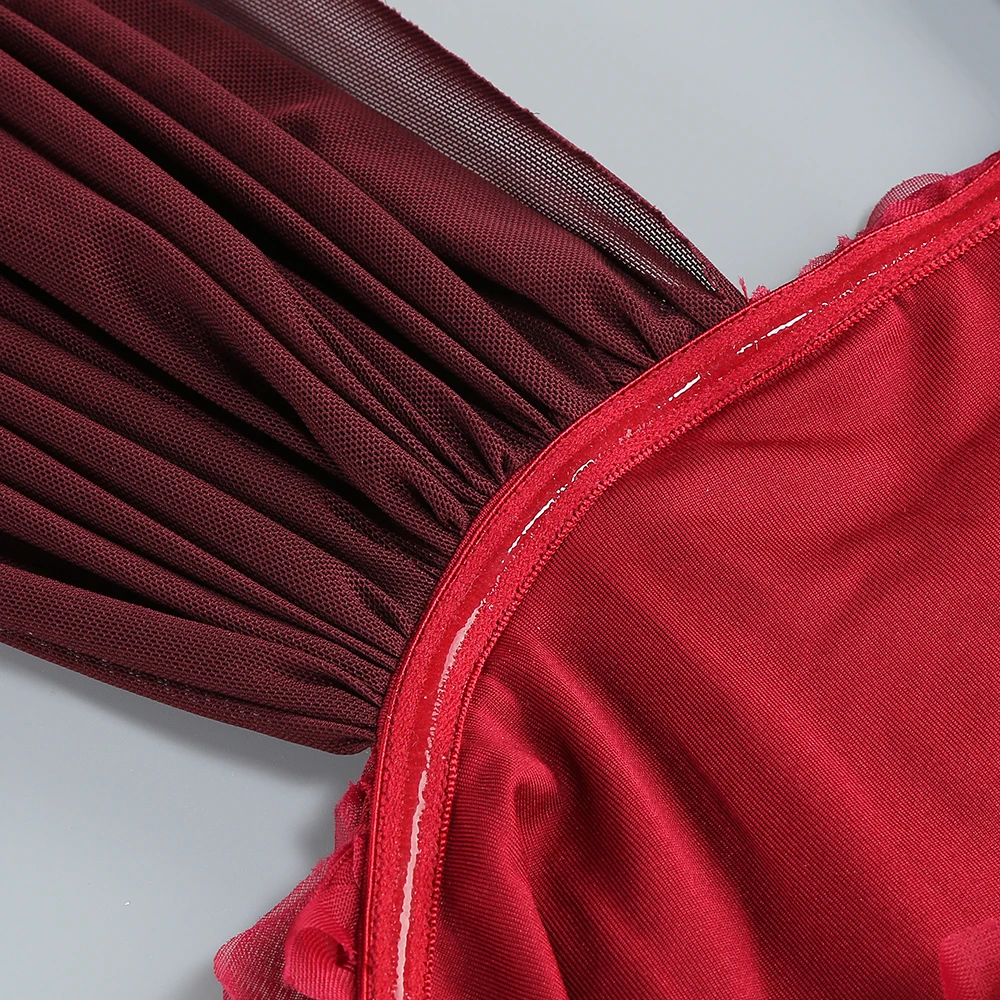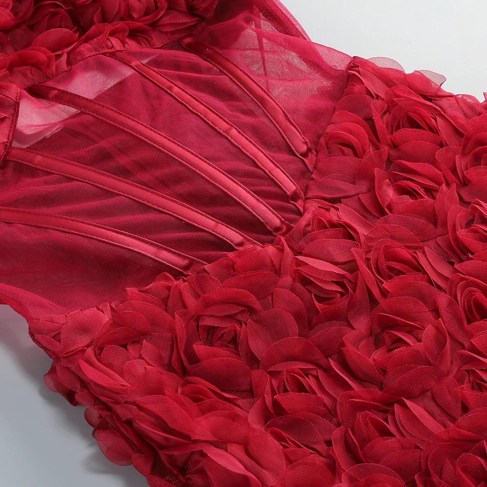 Gorgeous Burgundy Halter Mini Dress for Women 3D Rose Embellishment Flowing Chiffon Tail Sexy Elegance Temperament