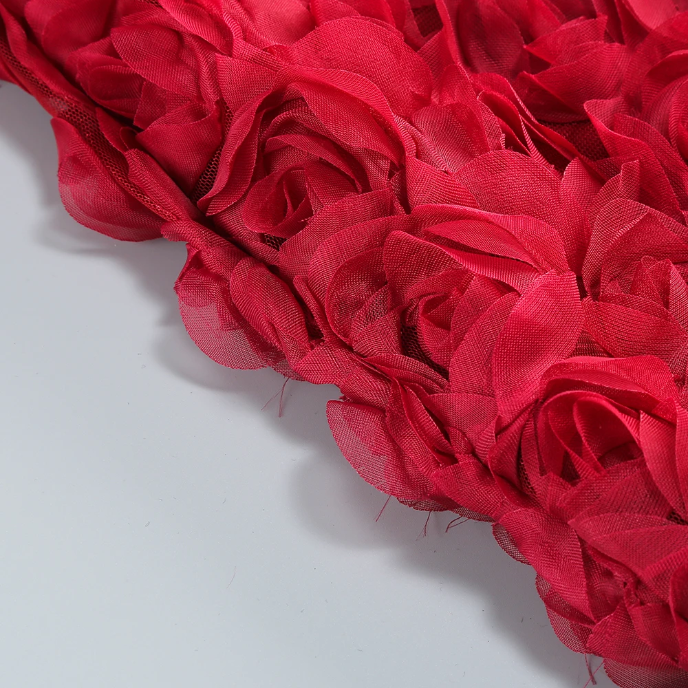 Hanging neck design generous show charming shoulder and neck lines, with sexy buff. The dress is covered with three-dimensional rose decoration, as if a blossoming rose surrounded you, romantic atmosphere filled with 🌹. The transparent fishbone design at the waist reveals the skin faintly, adding a little charm and fashion sense to the overall shape.