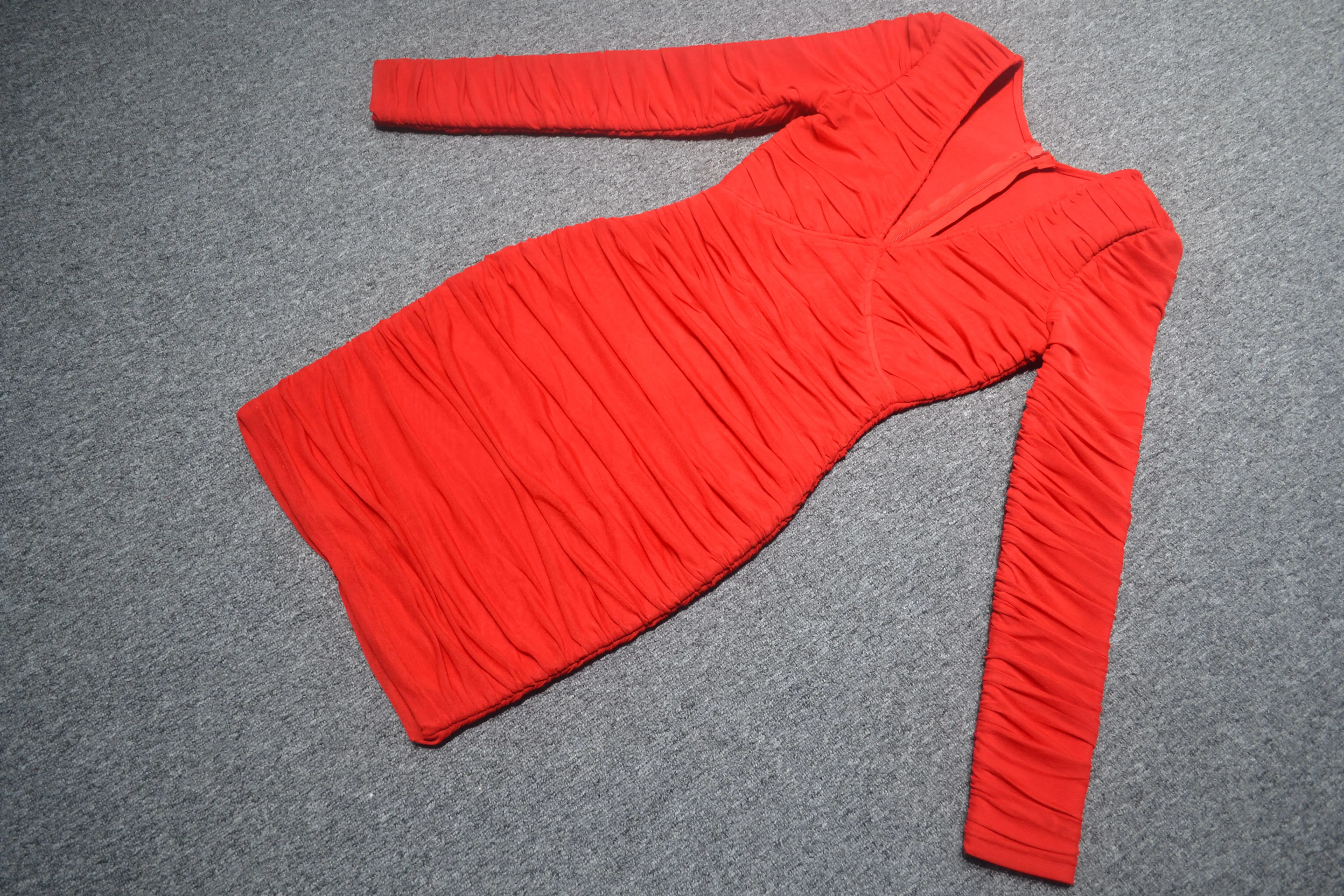 Robe moulante sexy à manches longues et col en V pour femme, tenue de qualité supérieure